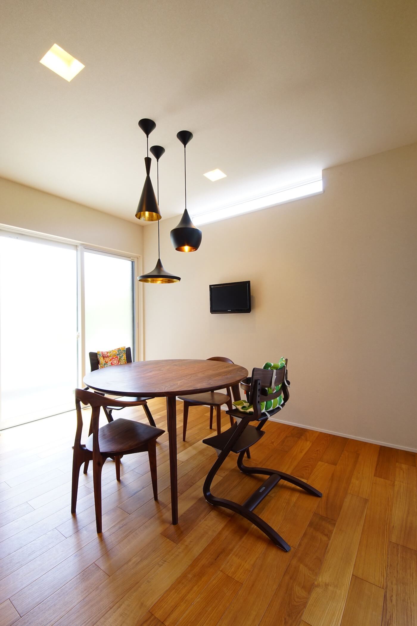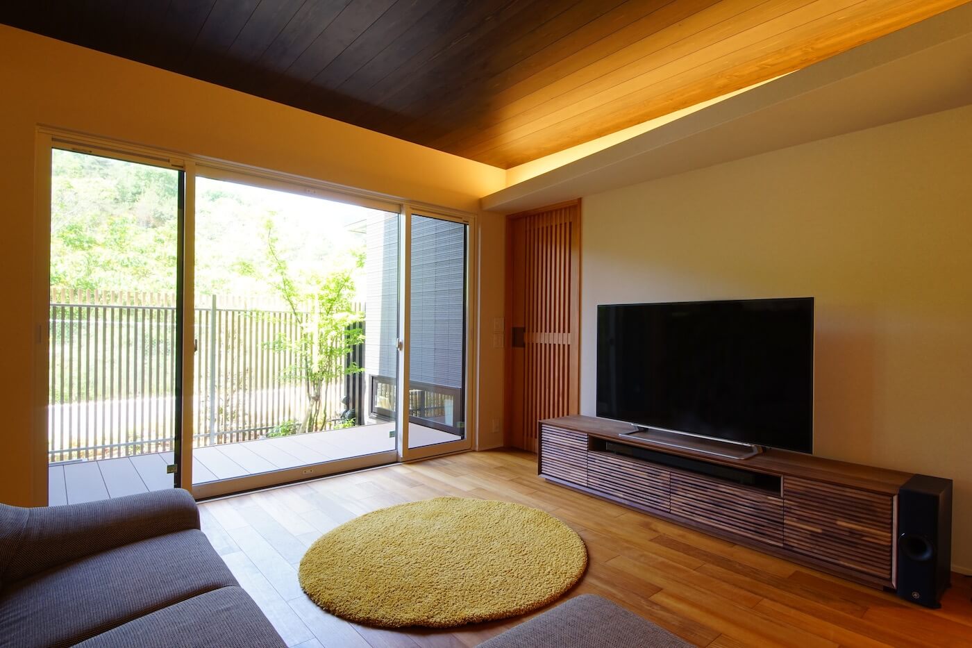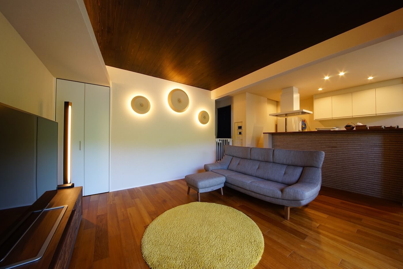 #間接照明 #天井板貼り #挽板フロア #チーク #カーテンの無い暮らし