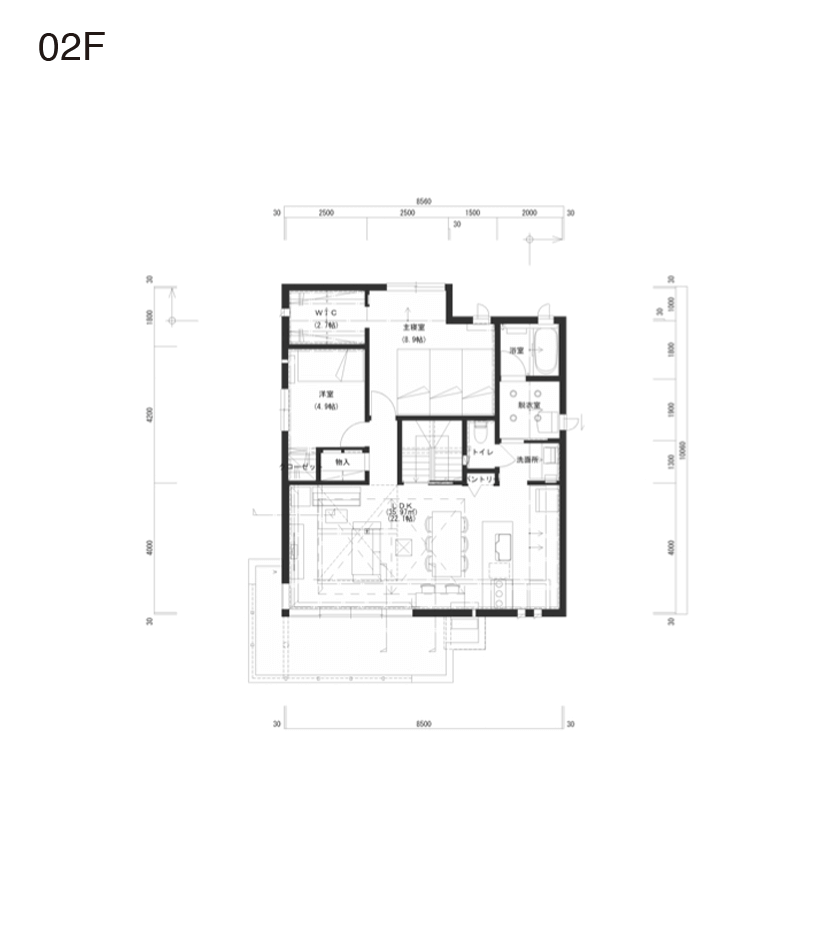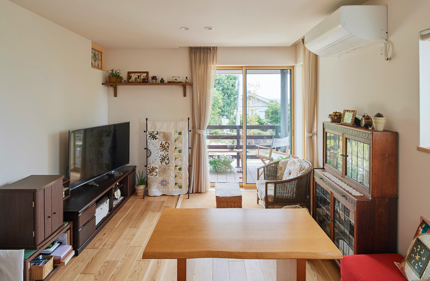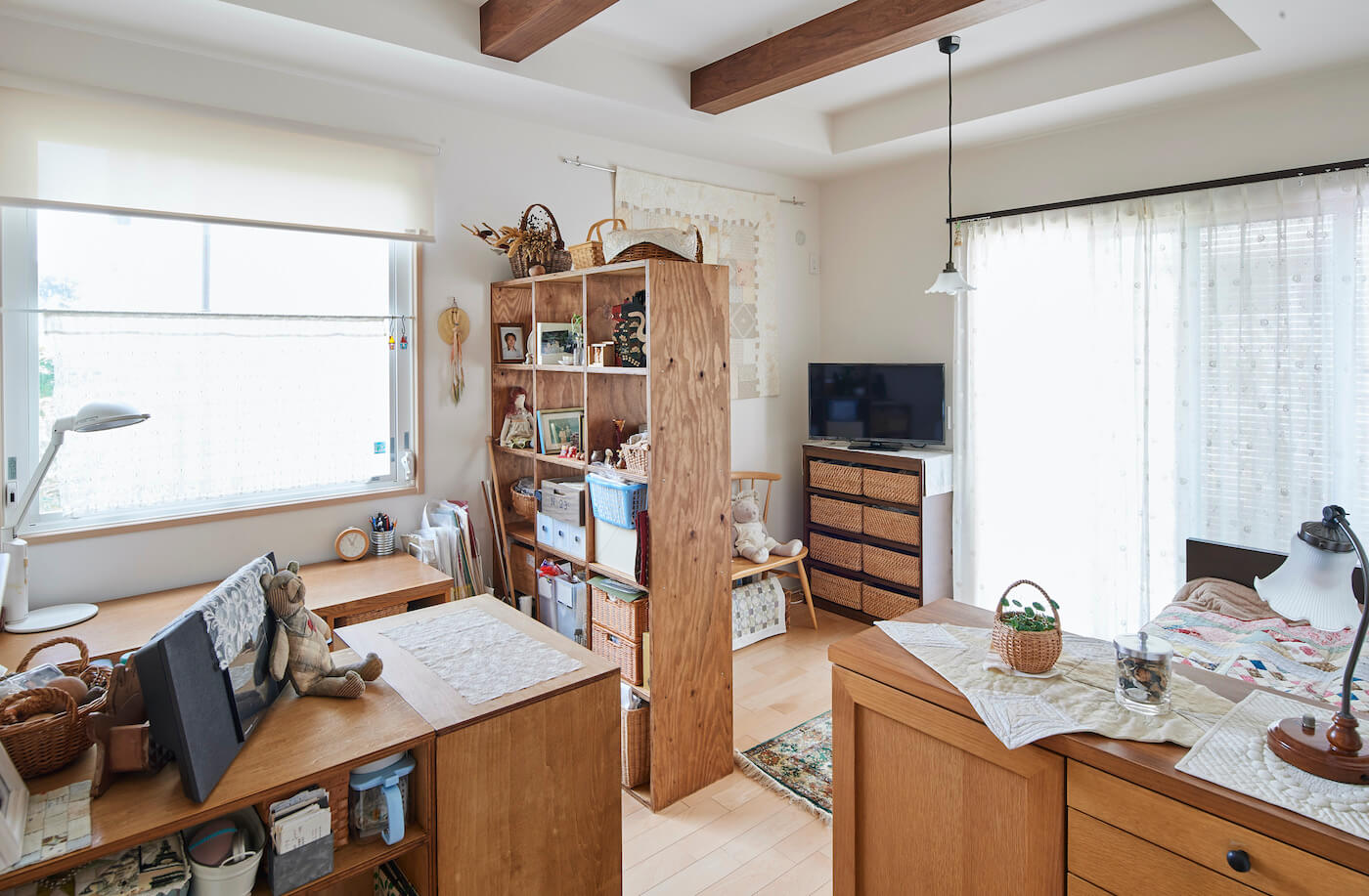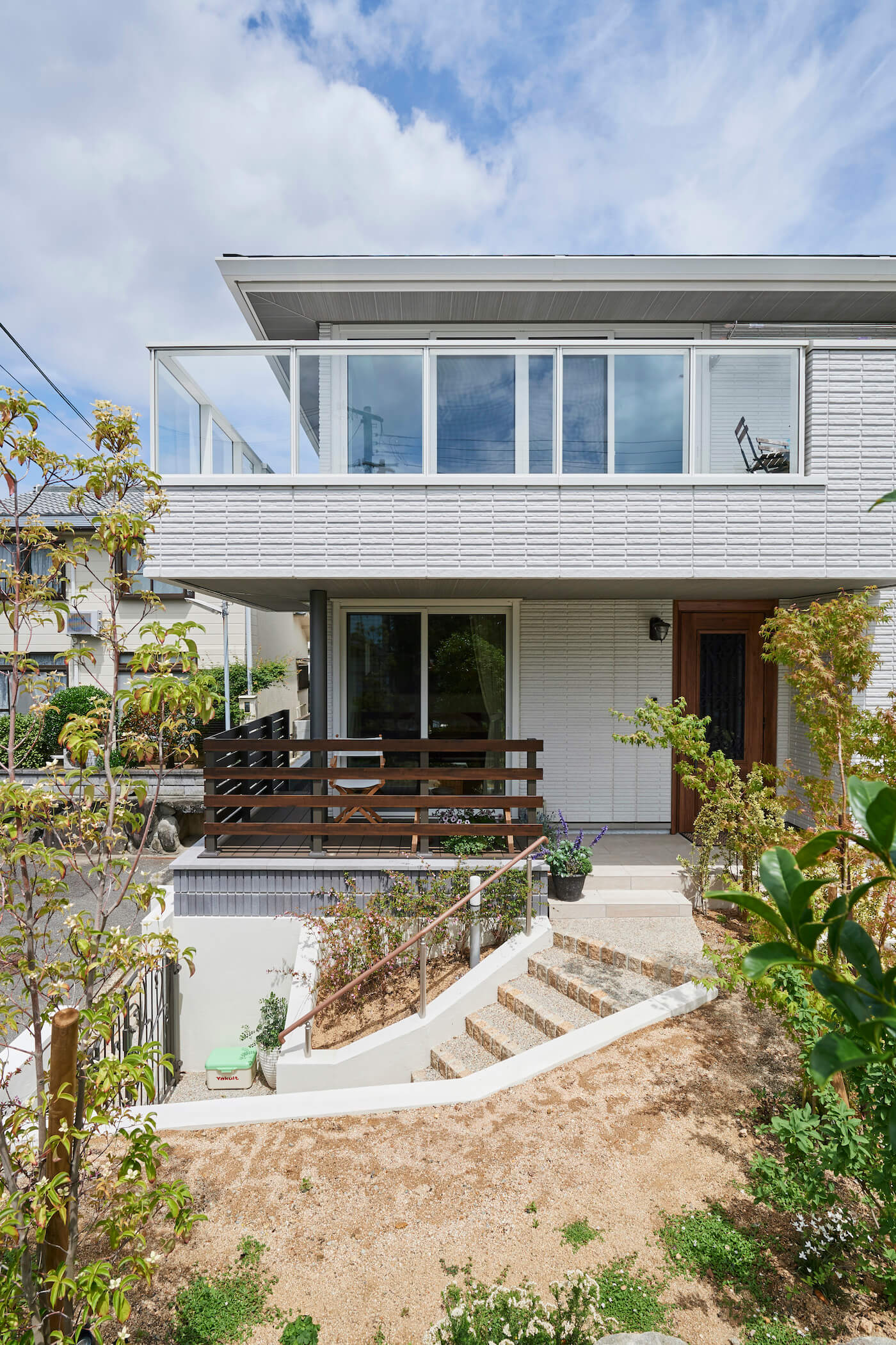 5人家族とご主人のお母様の2世帯住宅です。1階はお母様のご趣味のパッチワークの作業スペースを寝室に併設。ダイニングキッチンはカフェダイニングスタイルとしました。2階は、コーナーに窓を設けることで開放感を演出。段差無しで出れるバルコニーからは街並みが一望できます。料理教室をされている奥様こだわりのキッチン、プロジェクターを壁面に移してご家族で映画鑑賞など遊び心の詰まった住まいです。