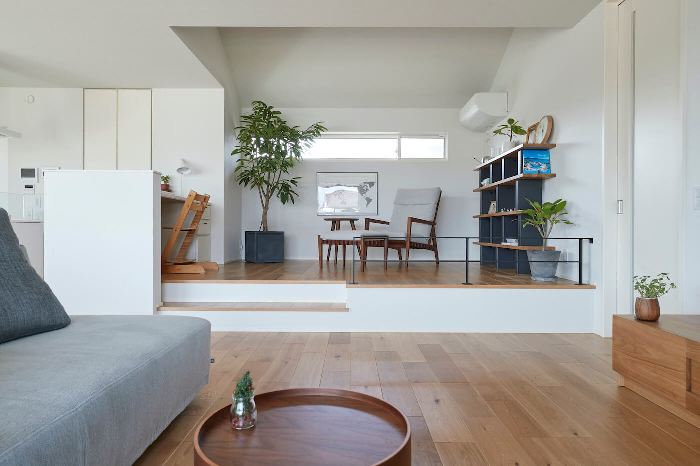 #2世帯住宅 #書斎コーナー #和室 #間接照明 #天井板貼り #書斎コーナー #勾配天井 #連窓 #大開口 #石貼 #ビルトインガレージ