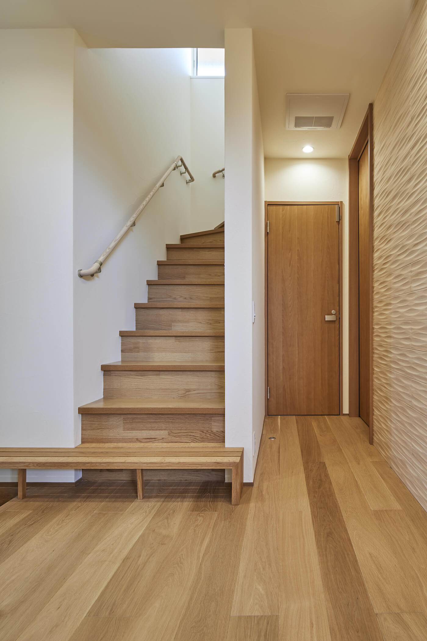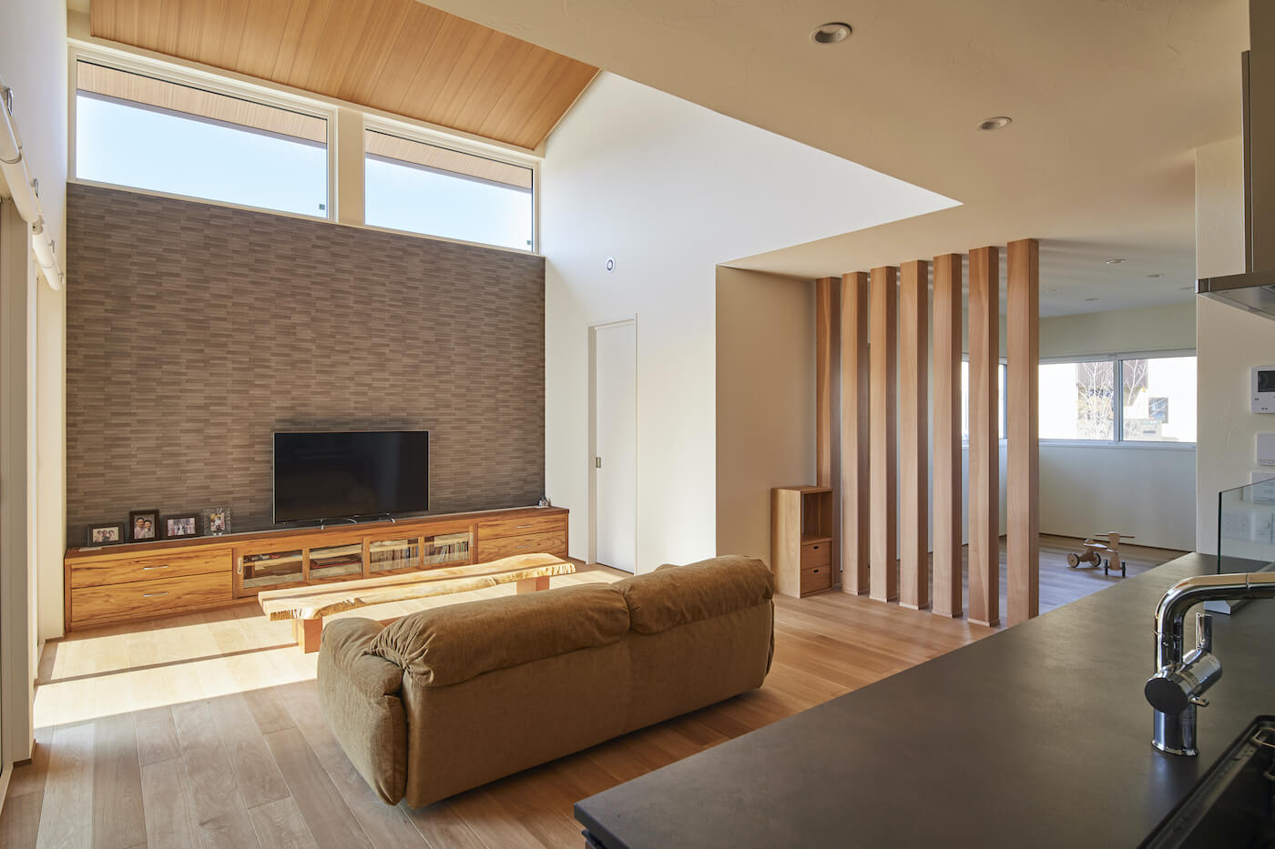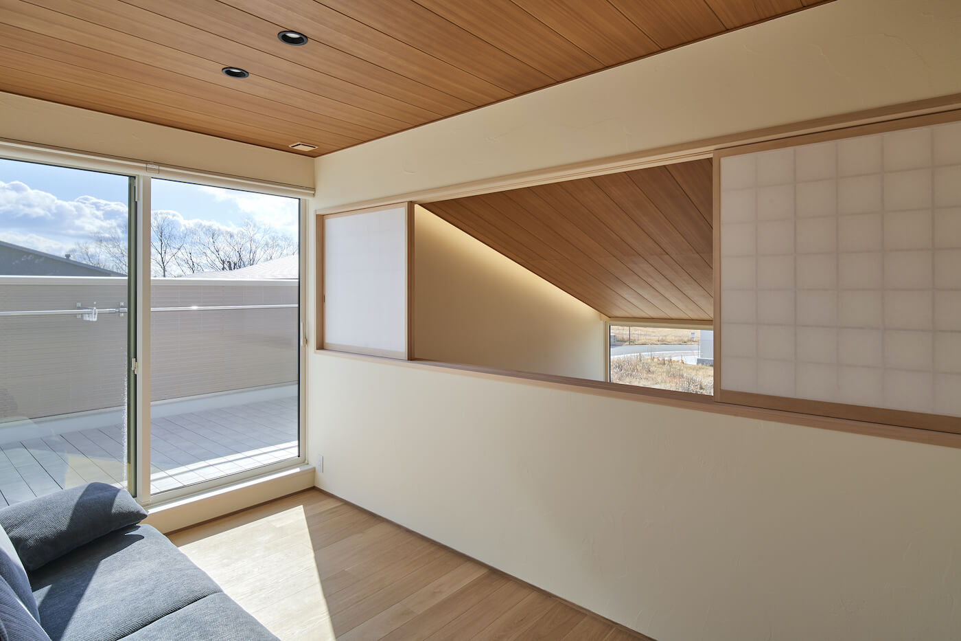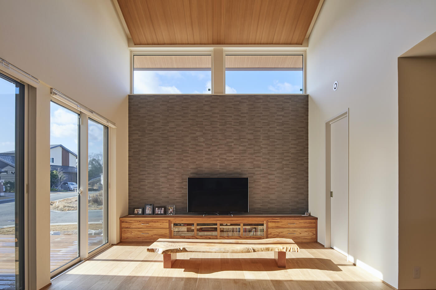 #自然素材 #ウッドデッキ #天井板貼り #間接照明 #吹抜 #オーク #和室 #掘りごたつ #連窓 #坪庭