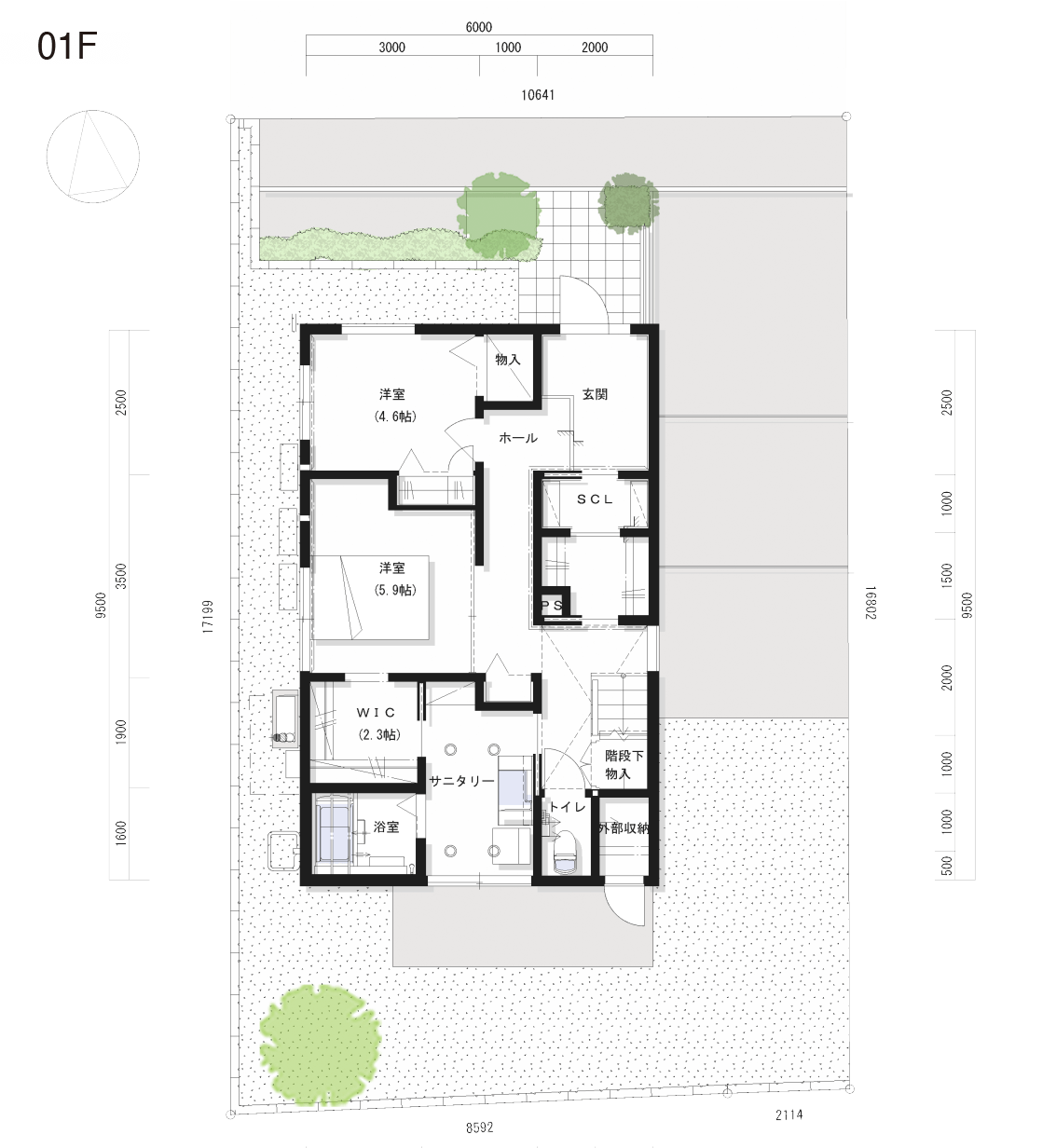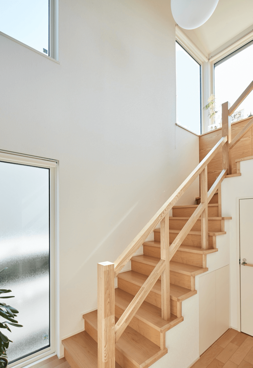 現地を見た時、四方を家で囲まれているため、二階リビングの方が、カーテンが開けやすく、プライベート感ある空間になると確信しました。