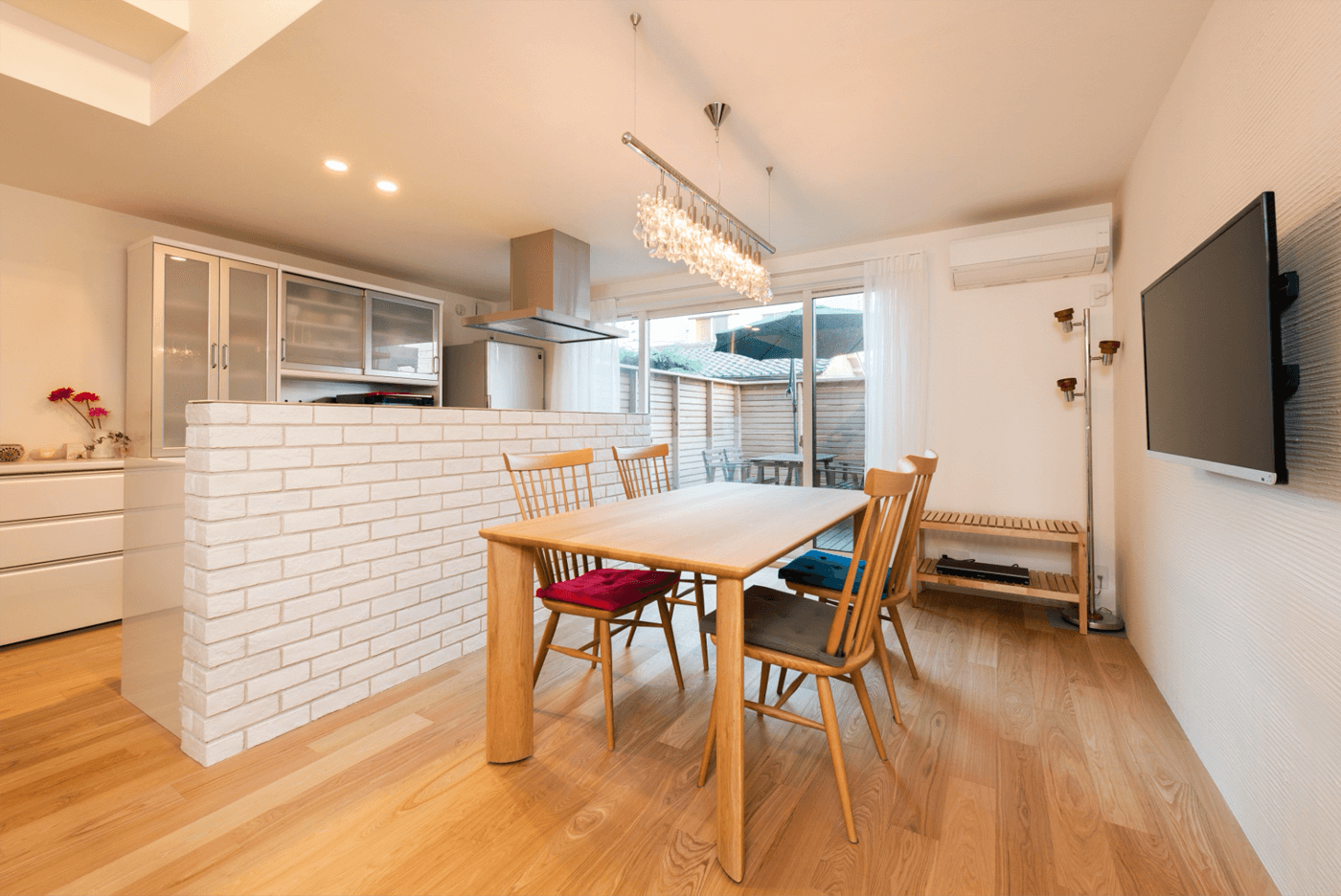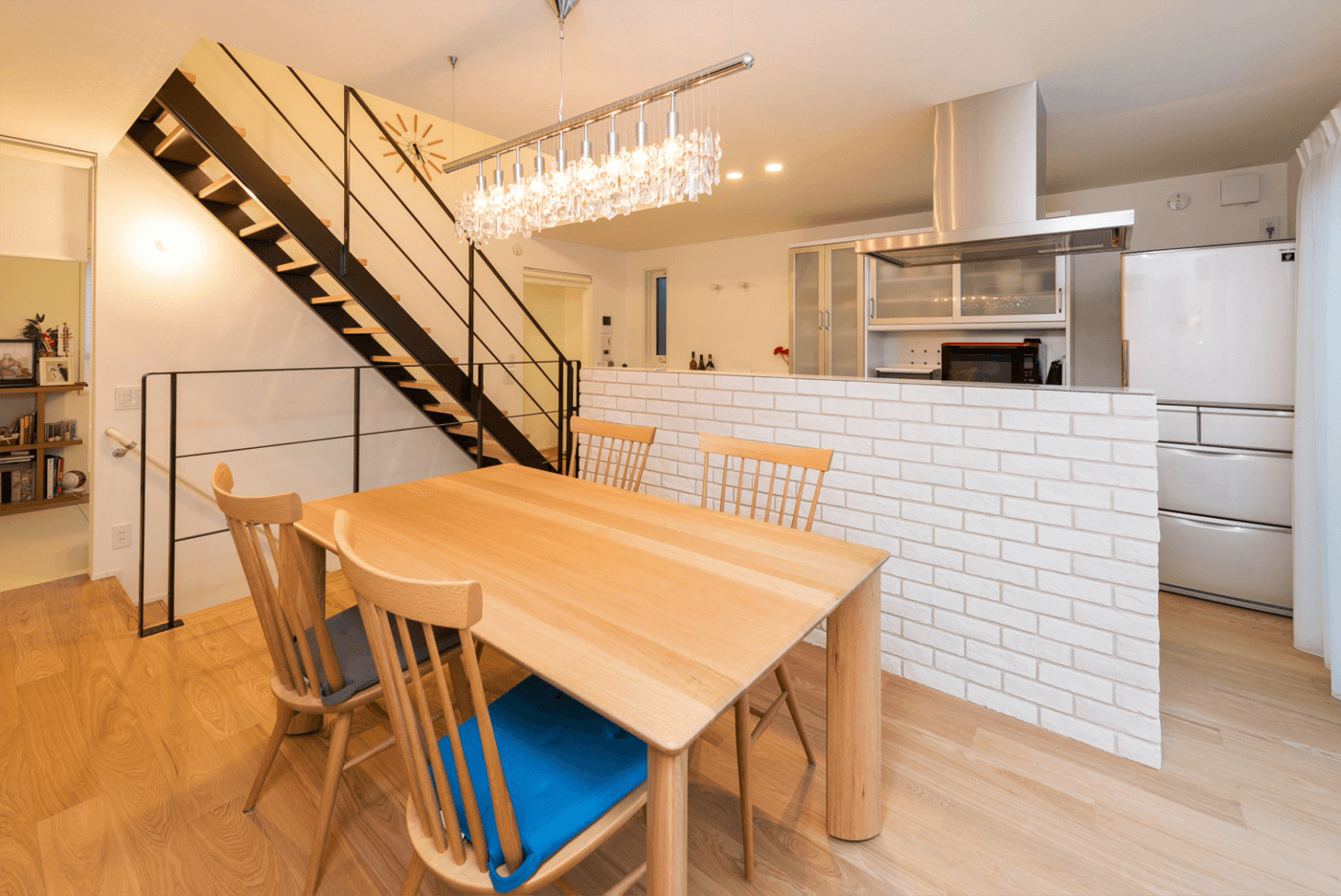 キッチンにはタイル、そしてアクセント照明にはトーヨーキッチンのクランカーを採用頂き、とても見栄えのよいLDKが実現できました。