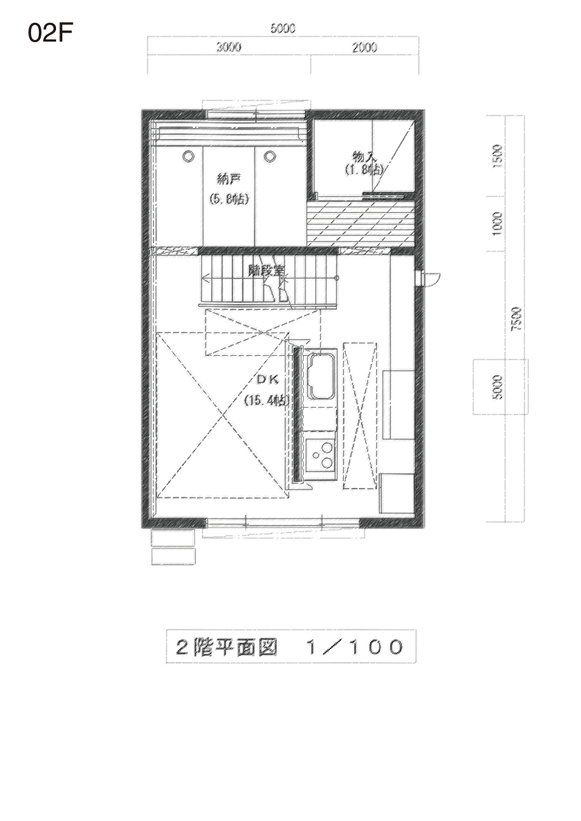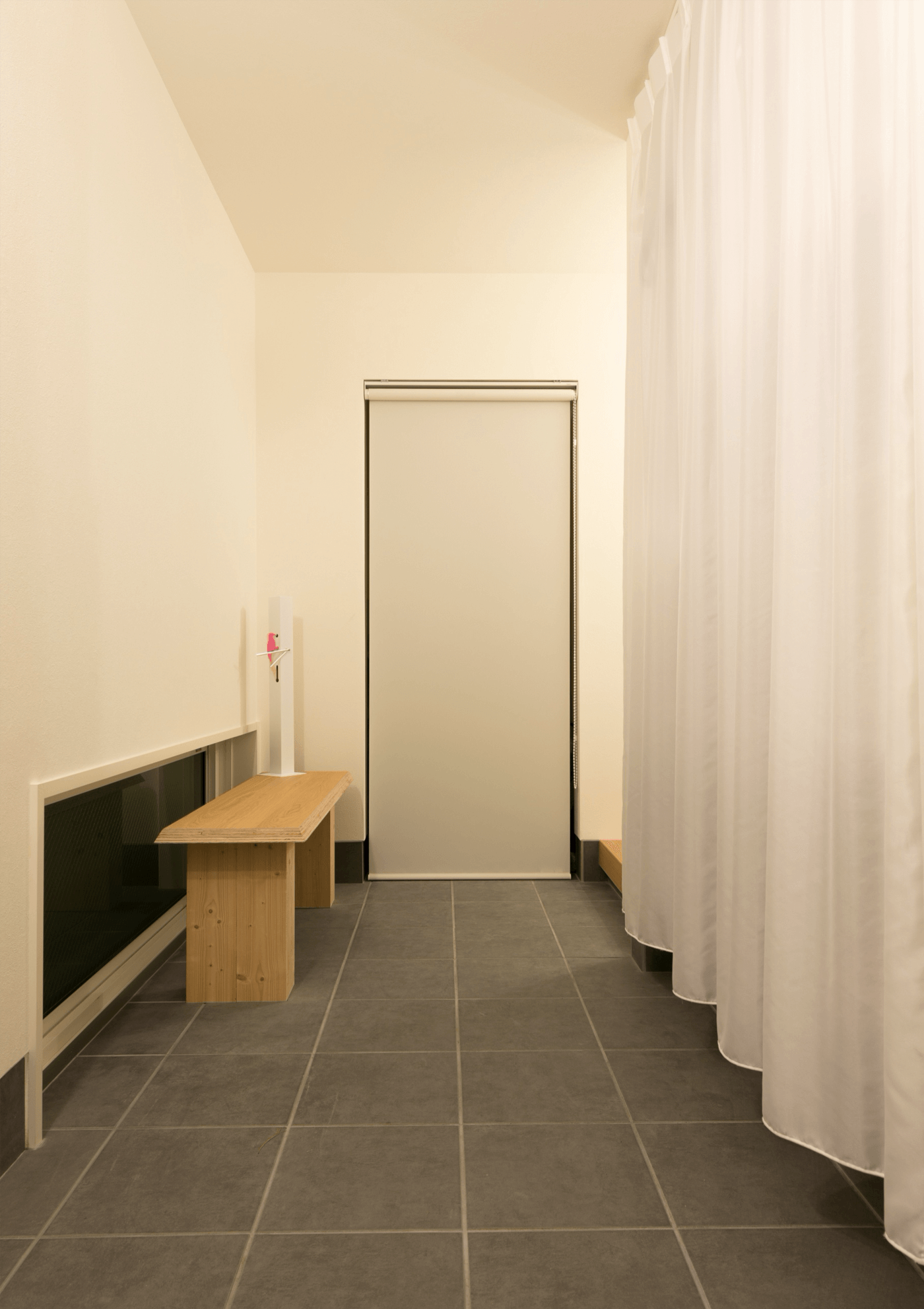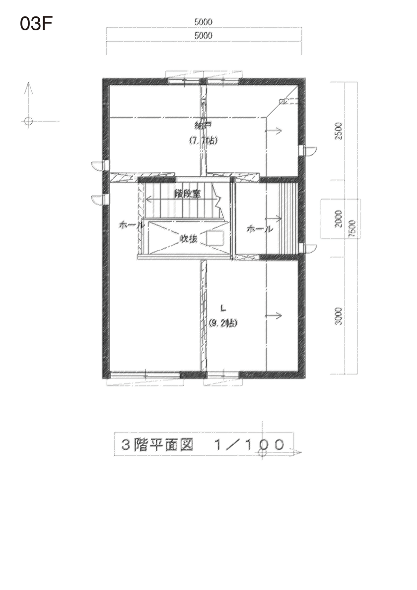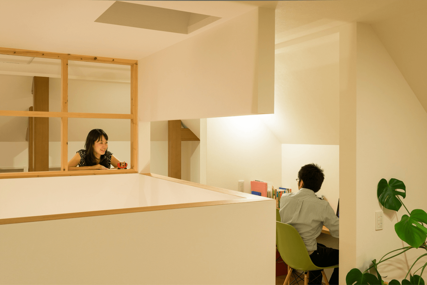 階段はシースルー階段で、階段を吹抜けと絡めることと、家の中心に配置し、天窓を設けることで、1~3階すべての部屋に光をおとすことを考えました。2階からは周辺の家の目線が入ってくる可能性がありましたので、ビルトインガレージ兼、目隠しのできるテラス案をご提案。