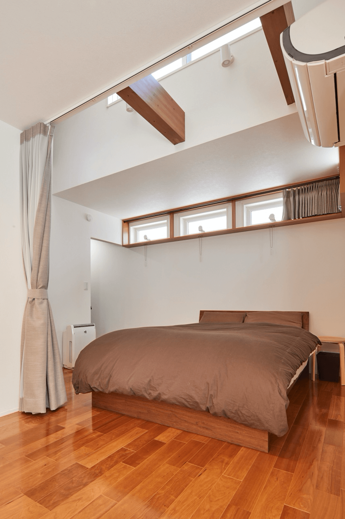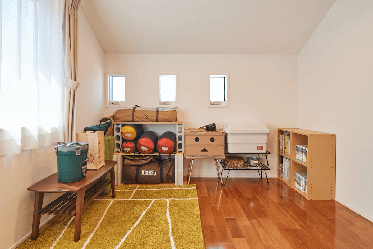 ポイントは、大きな日溜りがある南側を大きく開き、その他3方向は閉じるという点を重視し、間取りを構築。