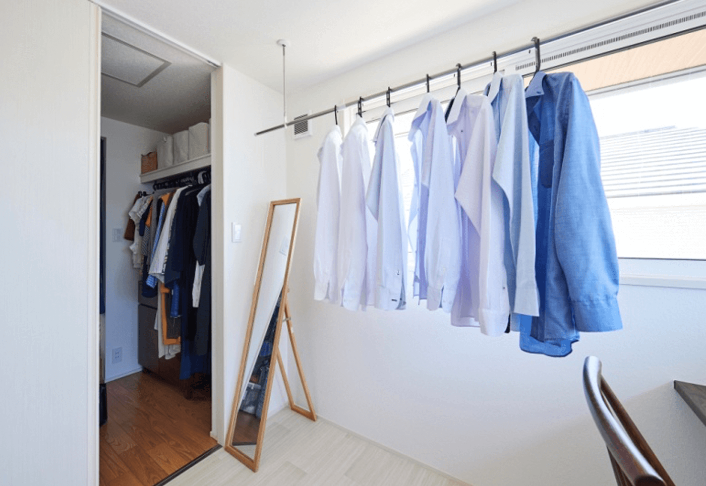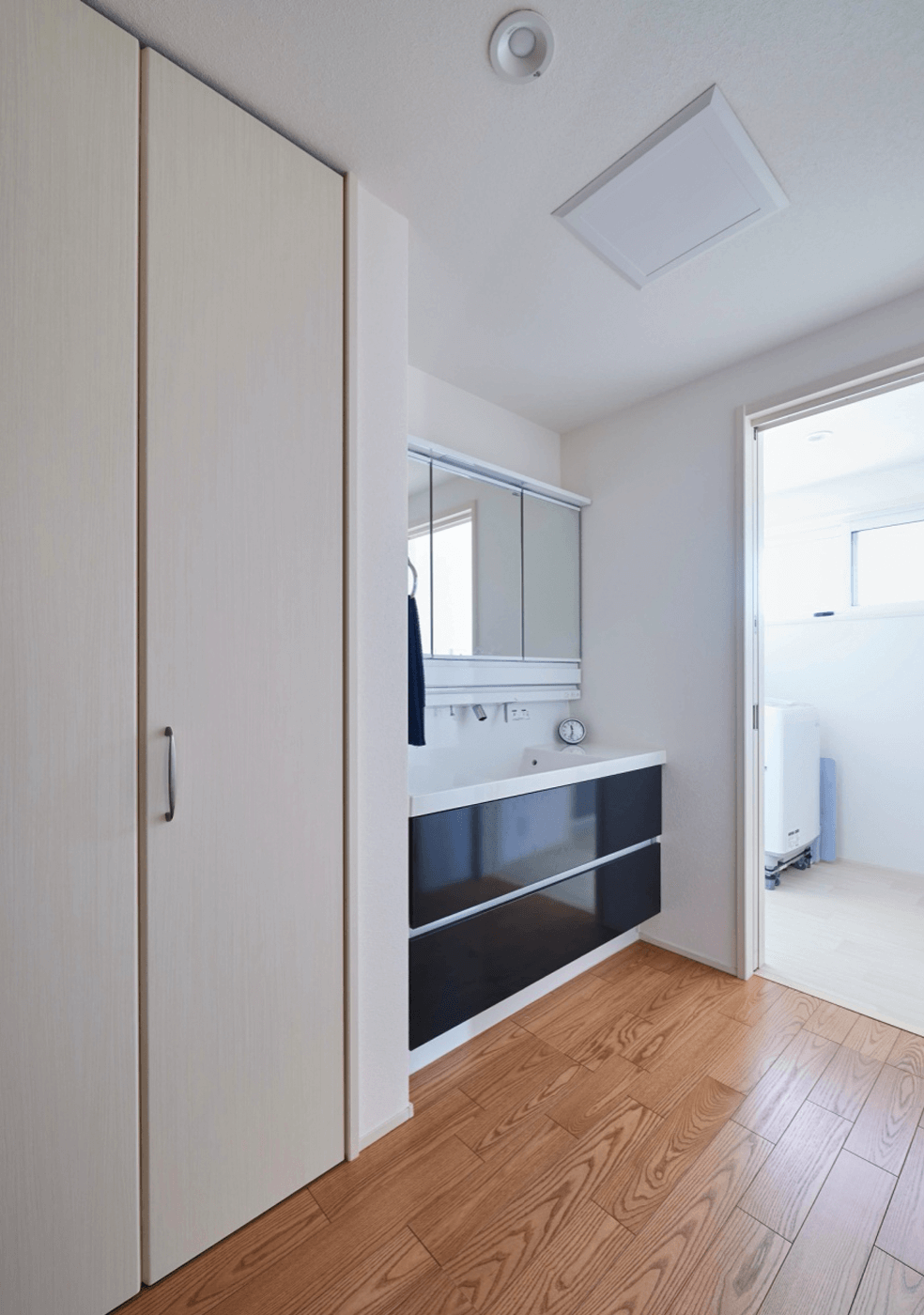 そして、共働きのライフスタイルより、家事動線をより短くするため、洗面→物干し→WICを連続で配置。