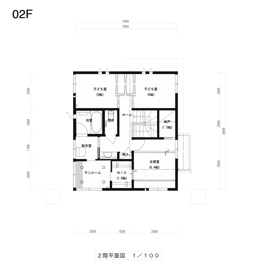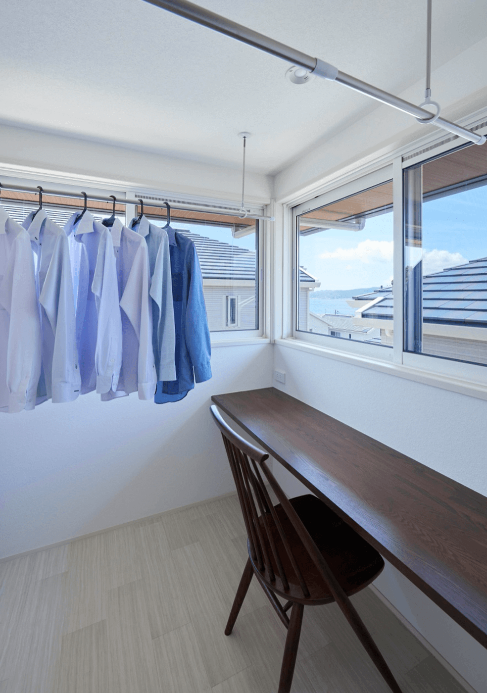 水回りは二階へ。バルコニーをなくし、室内干しスタイルを採用。
