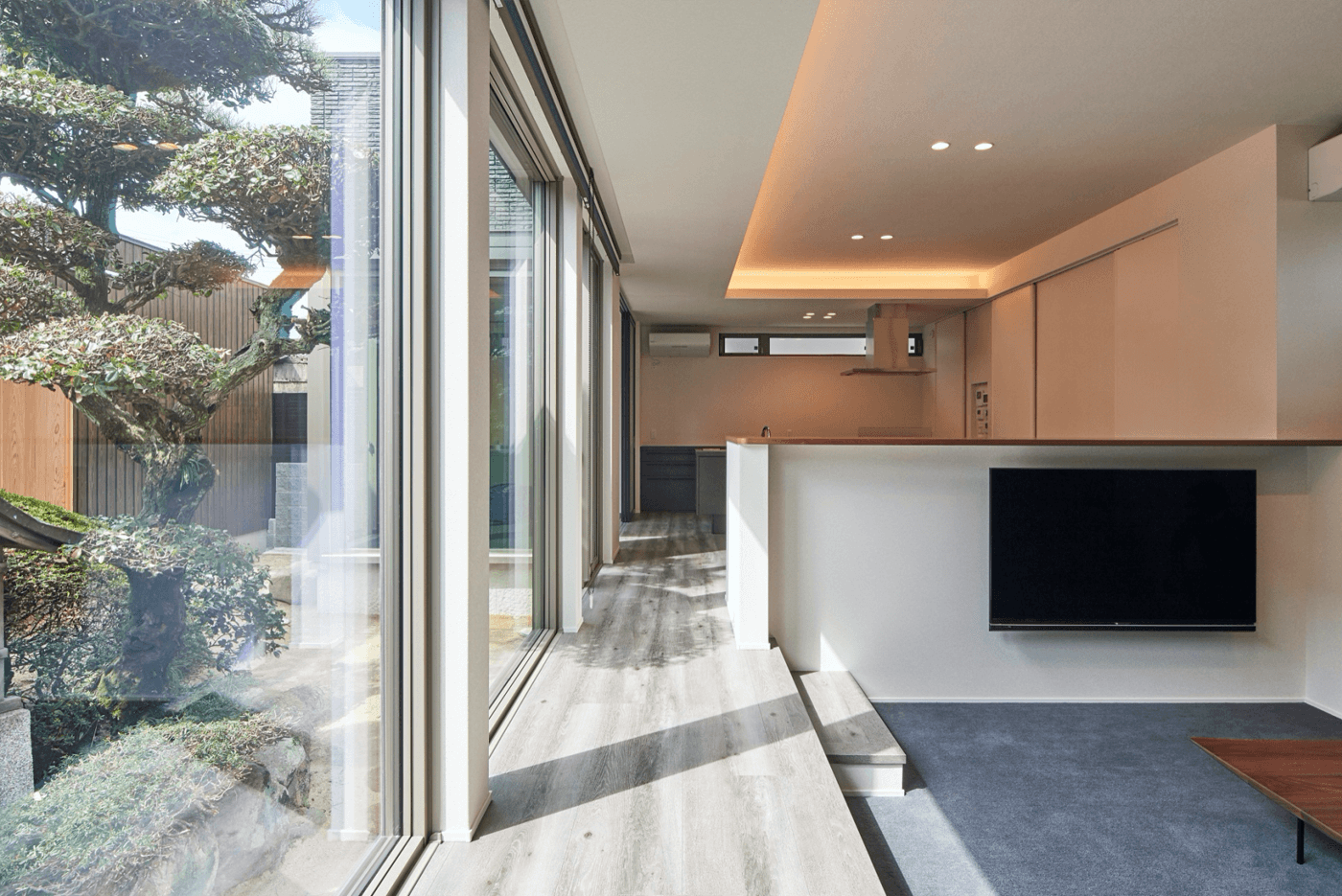 #ピットリビング #離れ #間接照明 #アイランドキッチン #コーナー和室 #大開口 #2階洗面バス #隠し部屋 #多目的デスク