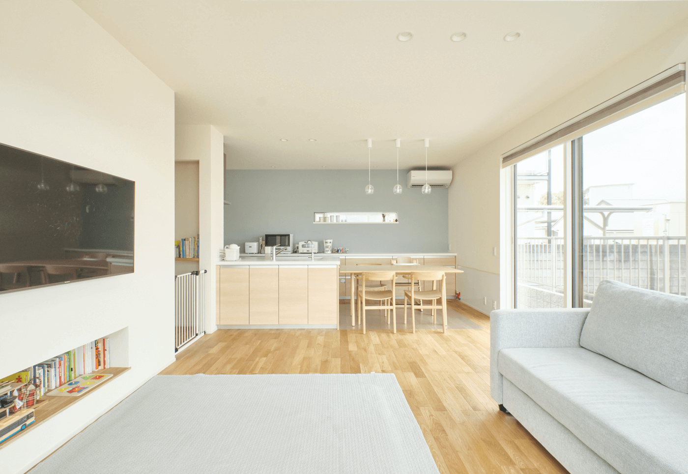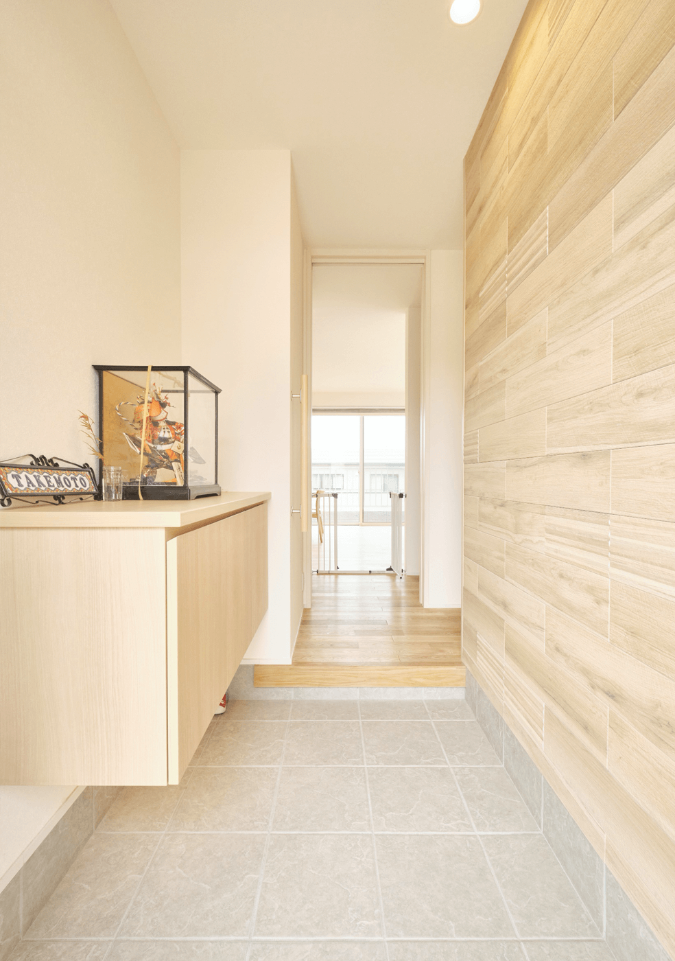 また、玄関の役割は通路として割り切ることで、あえてリビングに入ったときの解放感を演出するように考えています。