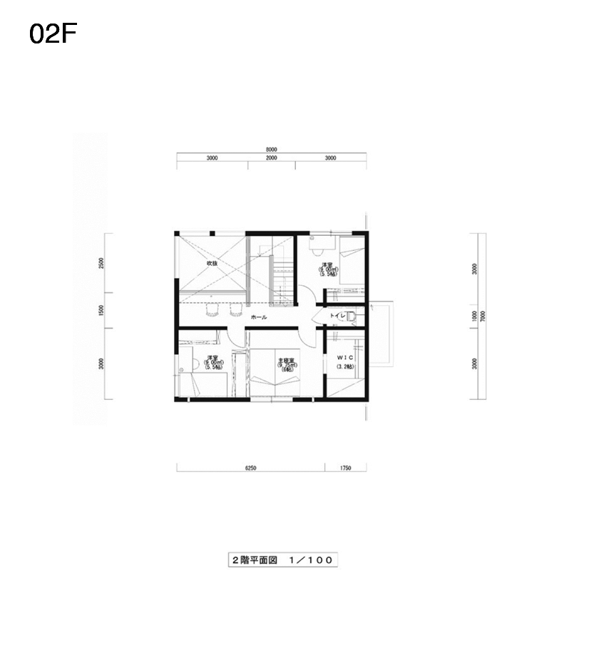 2階の居室は、南に2部屋、東に1部屋を配列。