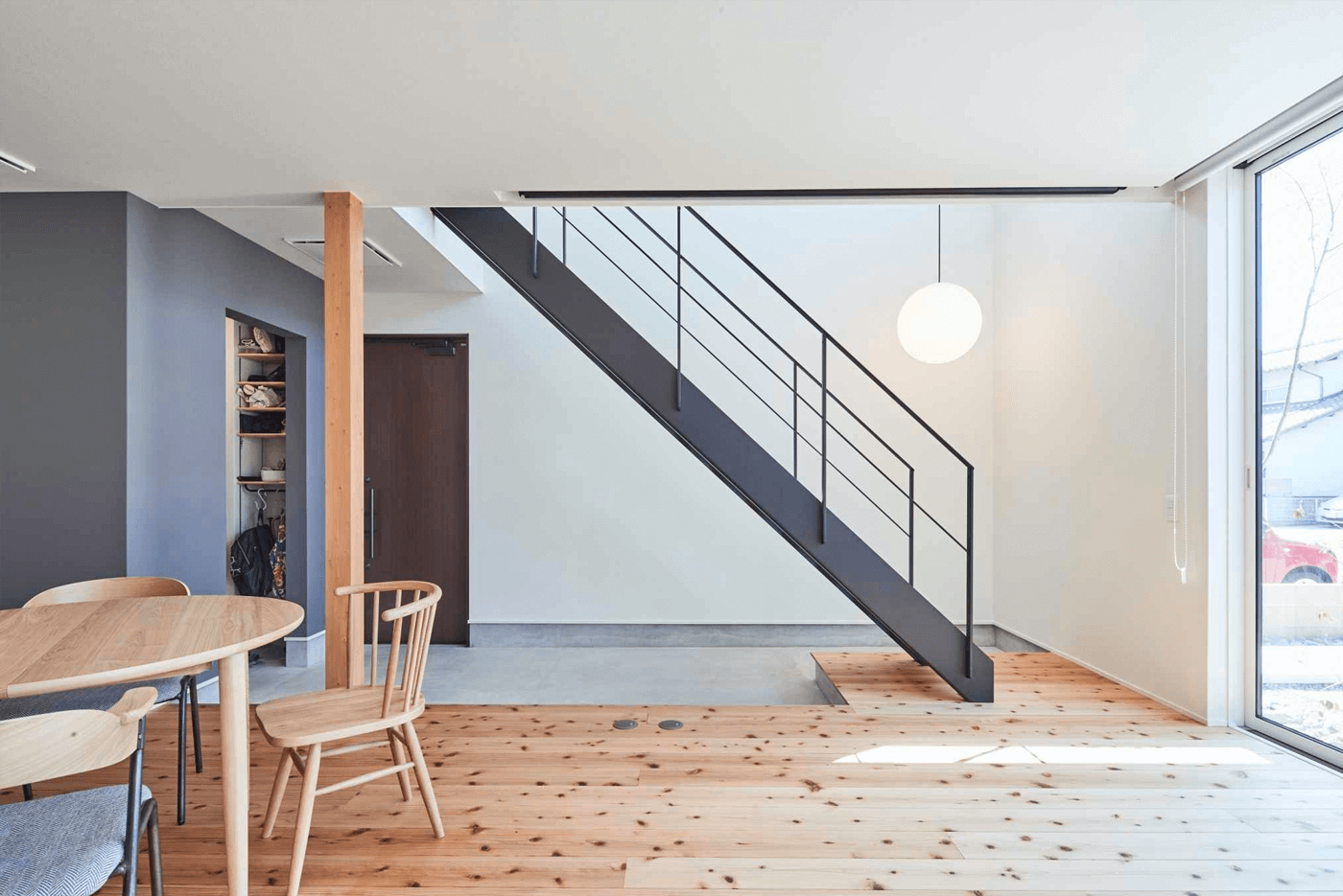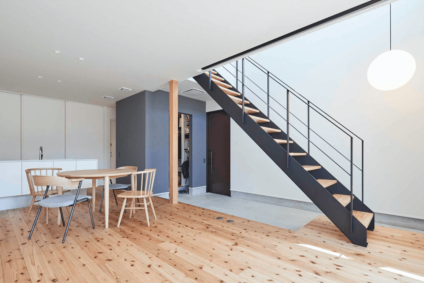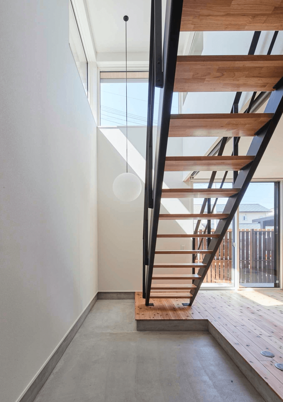 そして、目の前にシースルー階段がアクセントになり、出迎えてくれます。