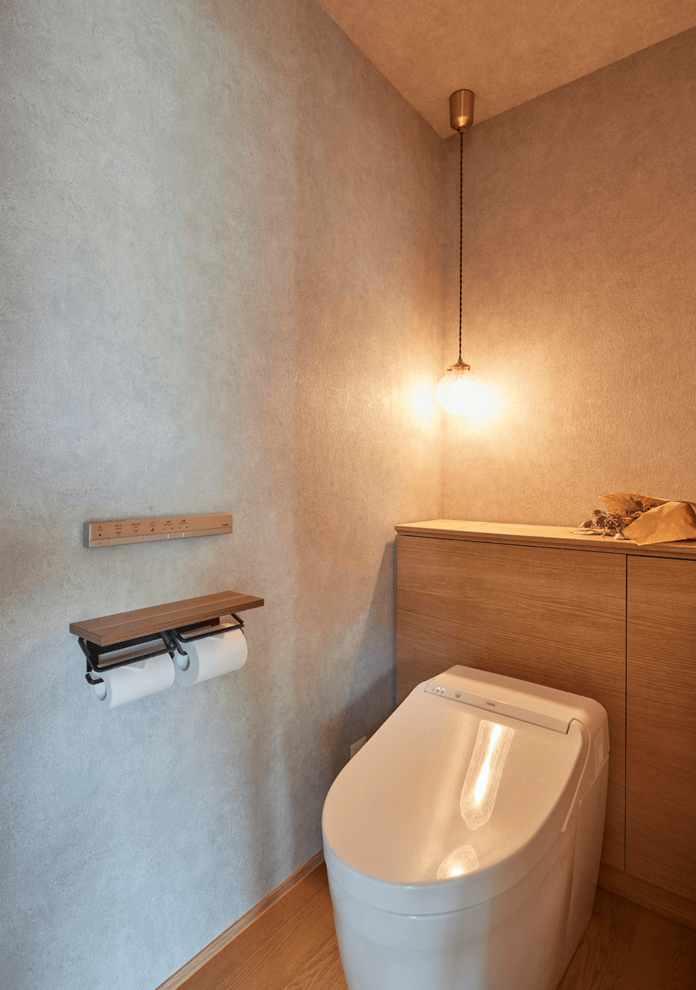 また家の一部の壁を珪藻土の塗り壁を採用し、質感のある力強い空間にしています。