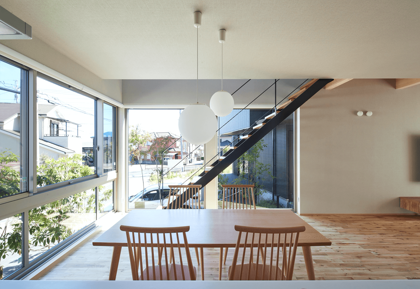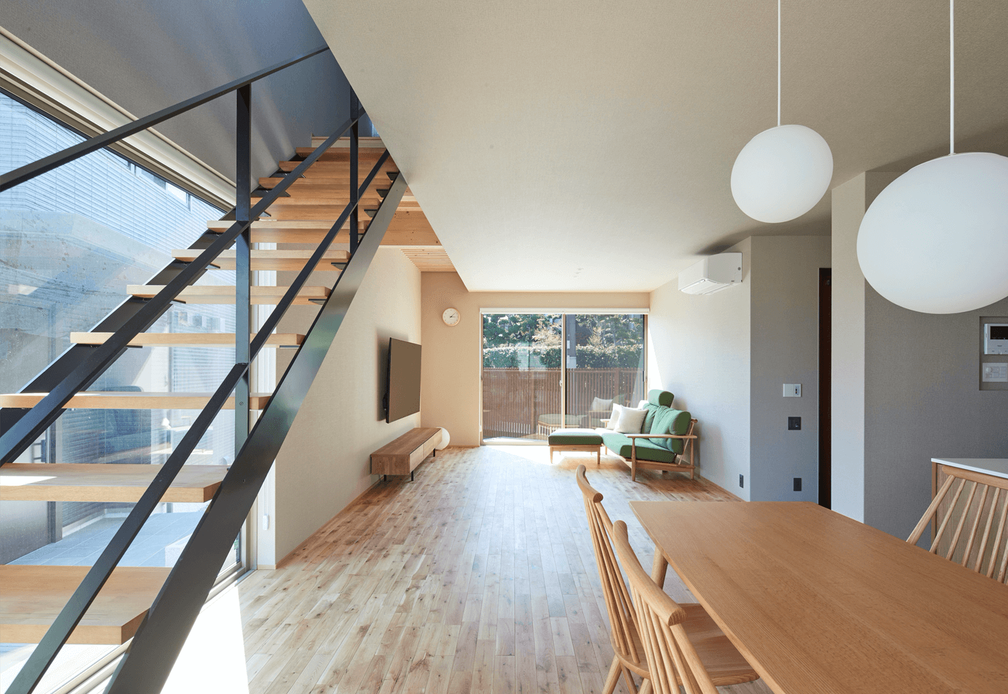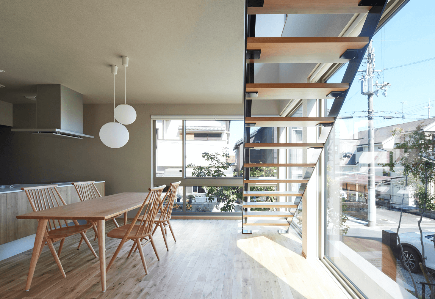 アクセントにシースルー階段を設け、大きな窓からの景色も見えるようにしています。