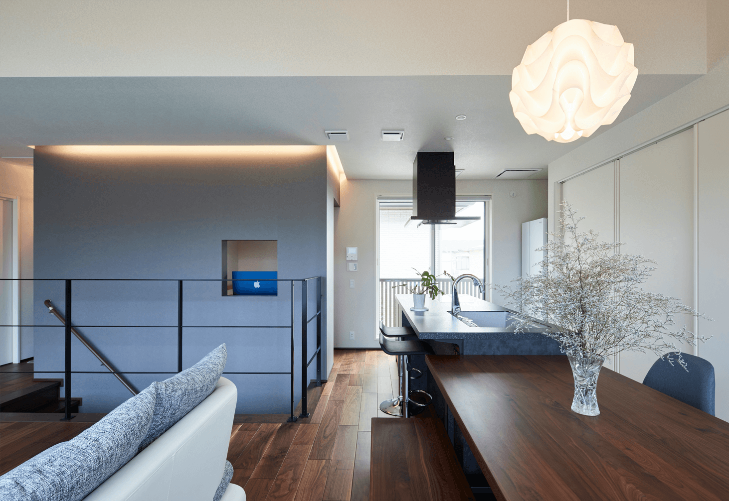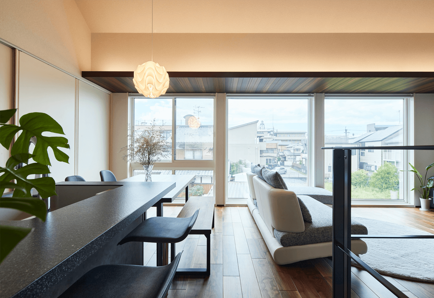 #ウォールナット #挽板フロア #折り上げ天井 #アクセントクロス