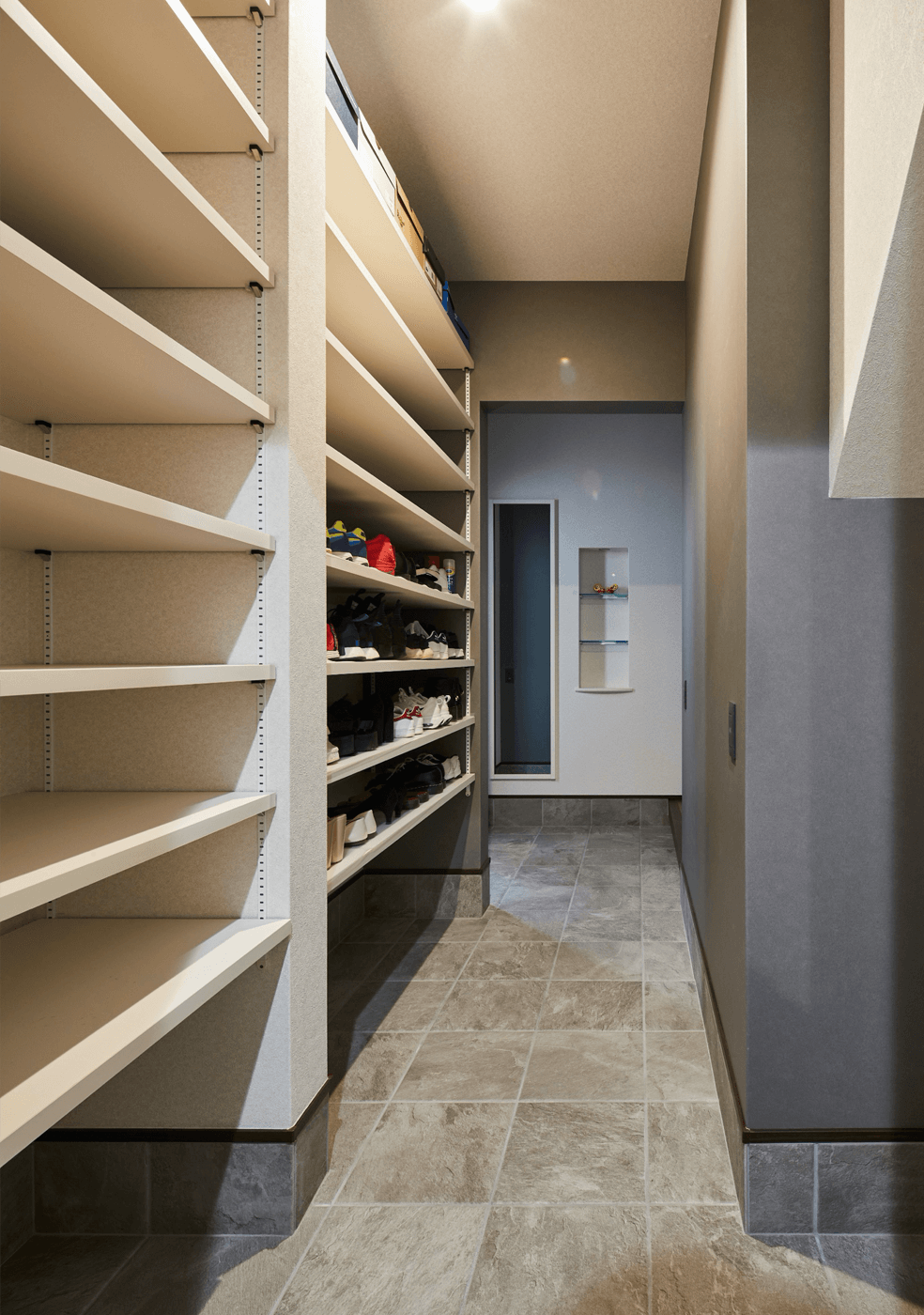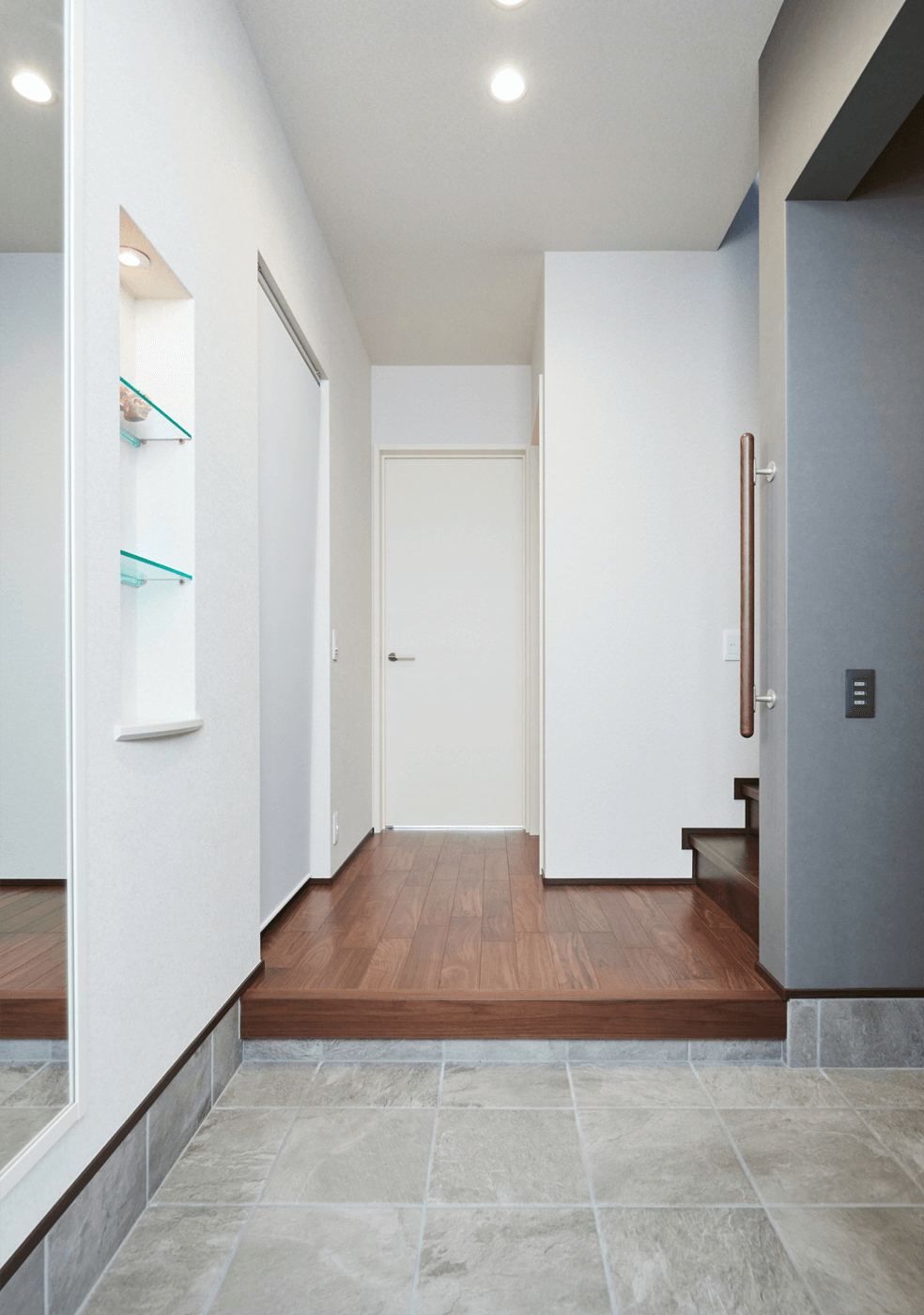 ですが、玄関2つと店舗、お母様のお部屋、大きな収納等々、スペースが結構必要でしたので、2階に上がってすぐのところに配置し、全てが成り立ちました。