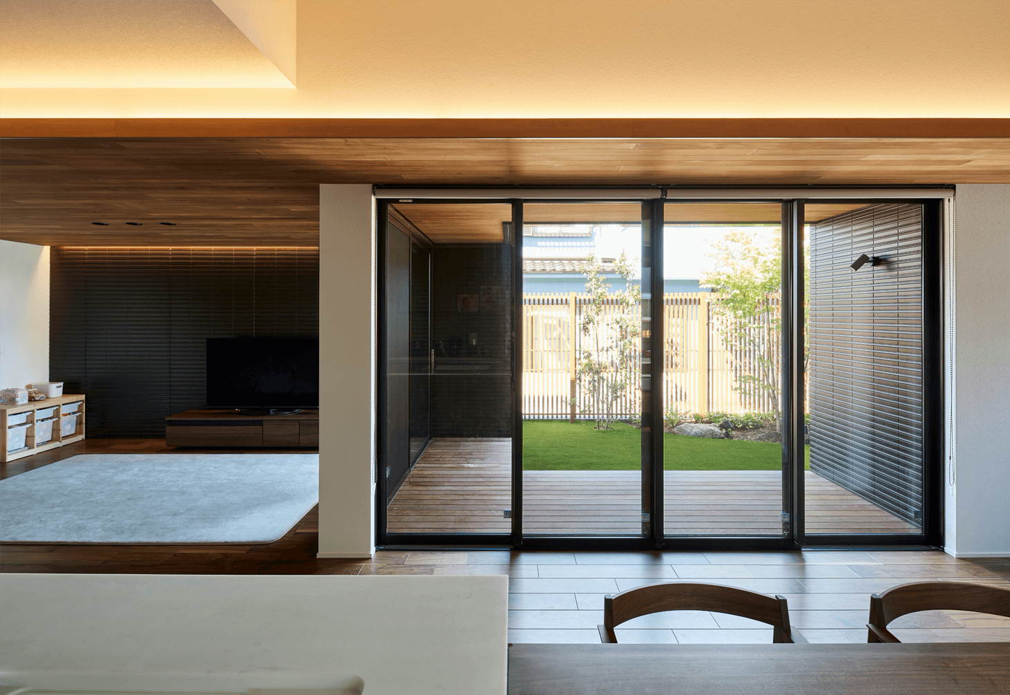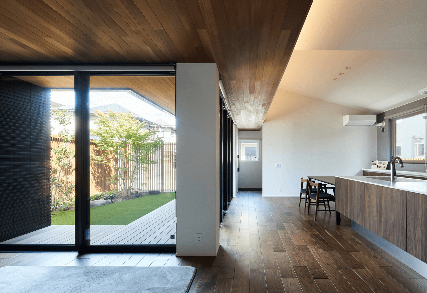 そこで、道路の抜けの特性を活かし、北東に中庭を設けて、そこからそれぞれの部屋を配置しました。