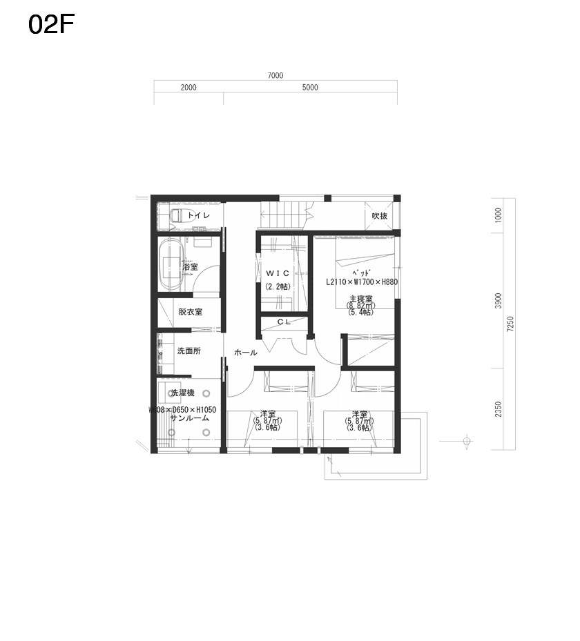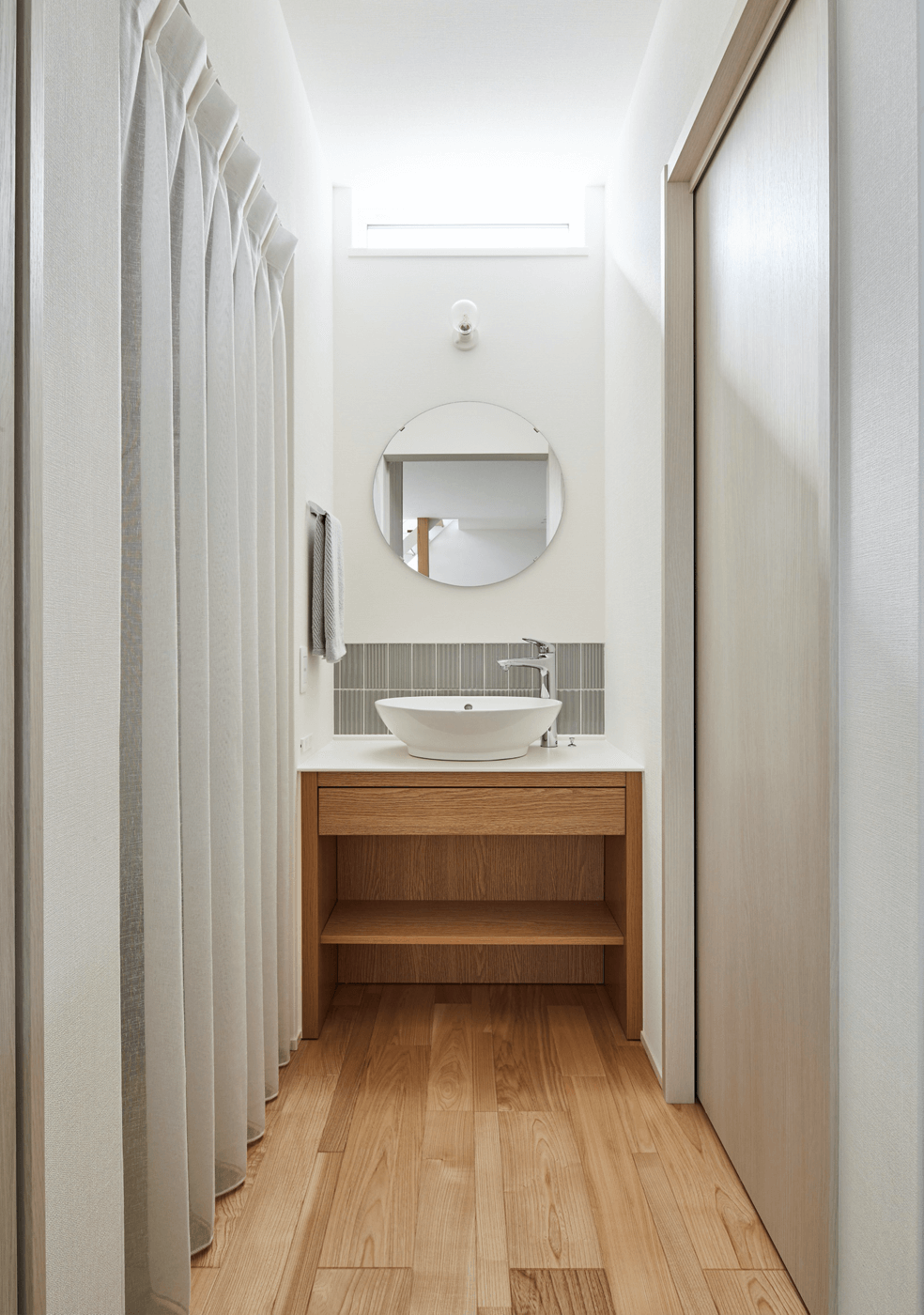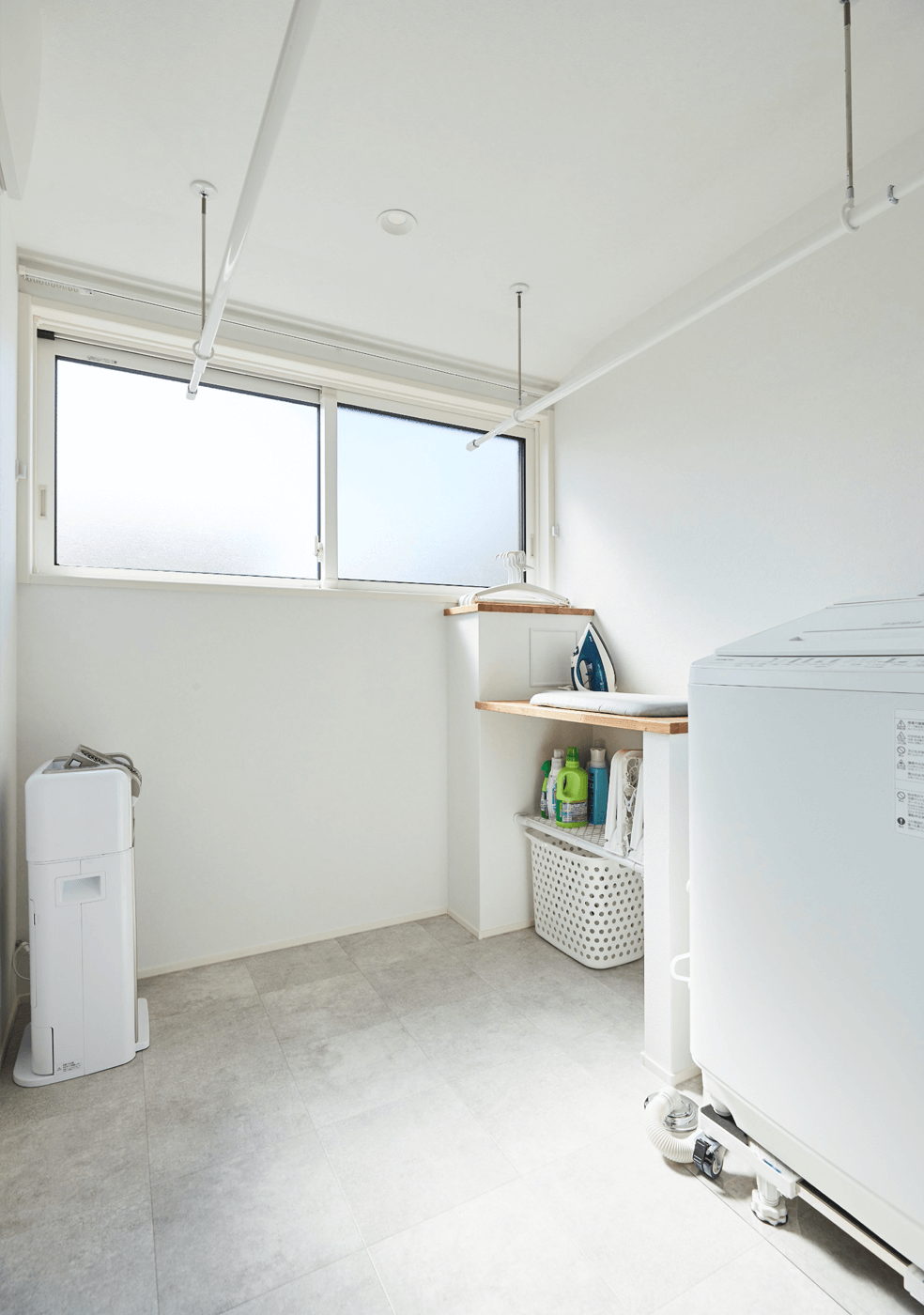 また、洗濯動線も平面で解決できるよう、水回りも2階に配置しています。