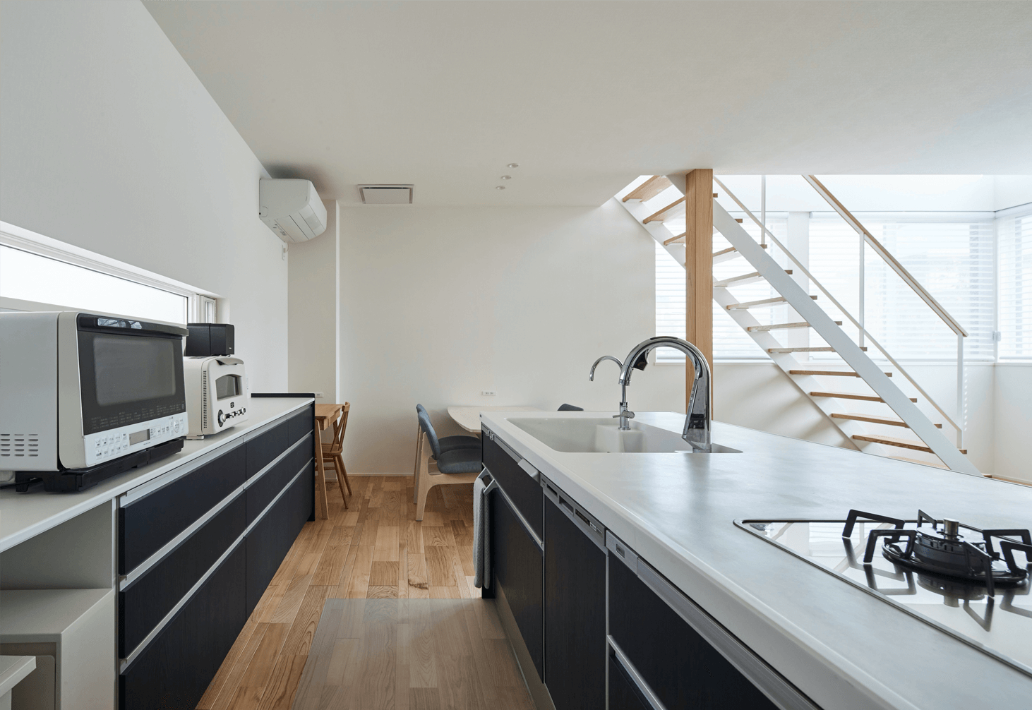 そして、コンパクトでありながら、広く見せるため、階段はシースルー階段を採用し、リビングと一体に。