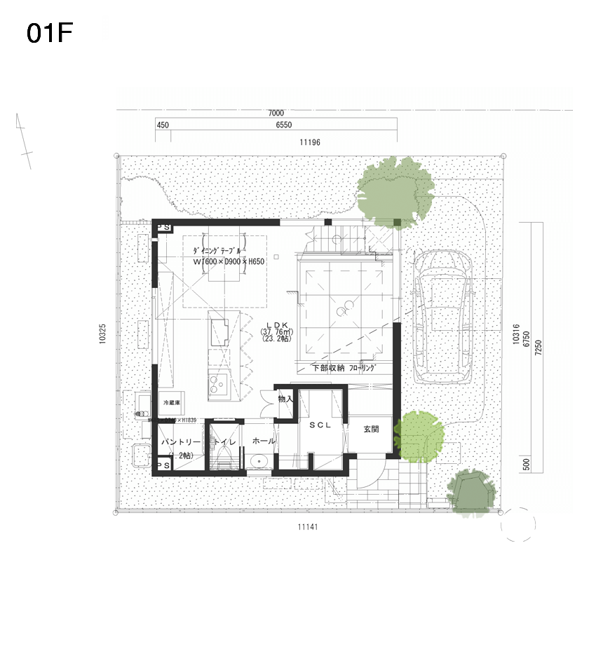 玄関は「入ってすぐリビングでもかまわない」とおっしゃって頂けましたので、玄関とも空間を共有しています。