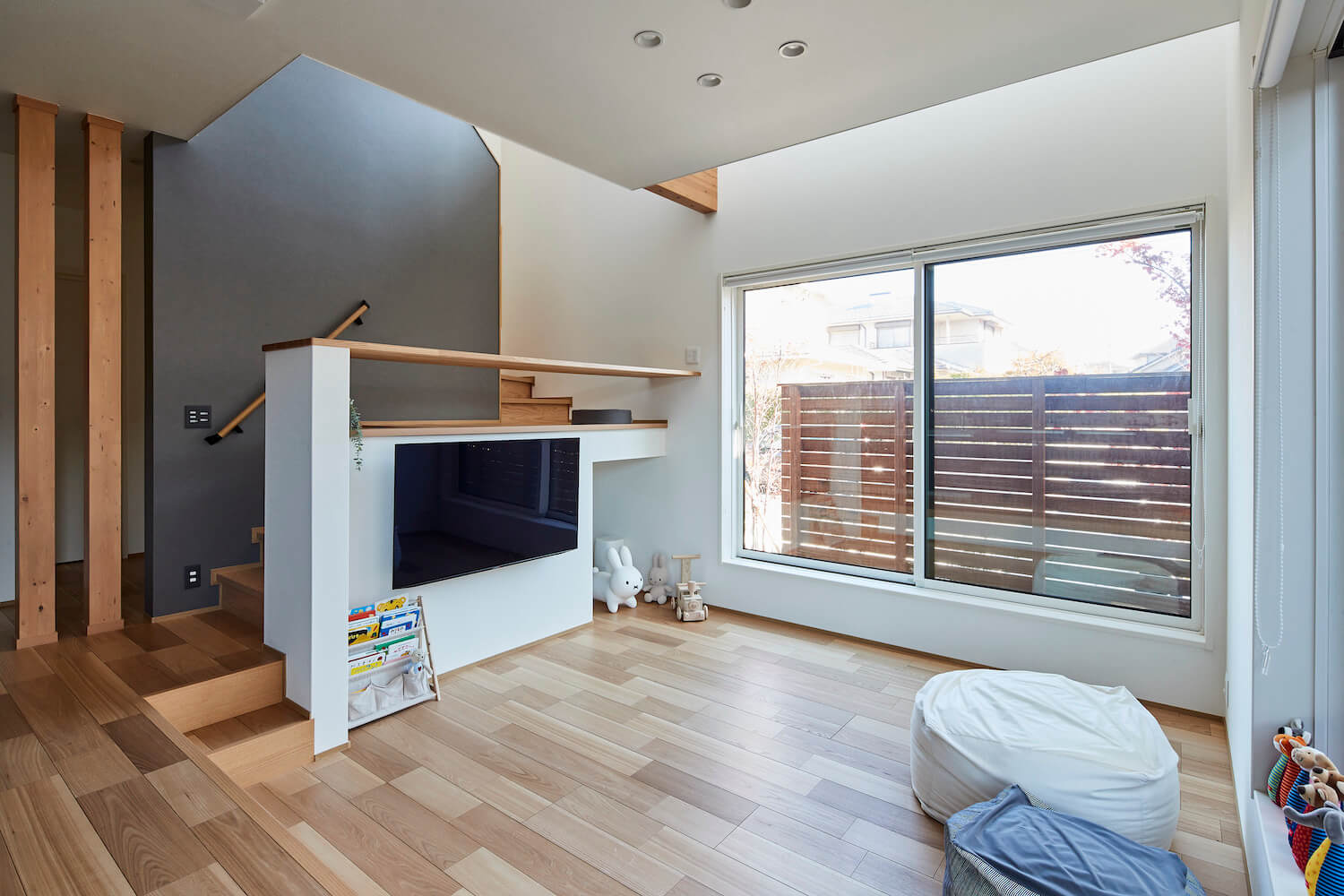 たくさんあるおもちゃ収納には階段下の隠れ空間が一役かっています。