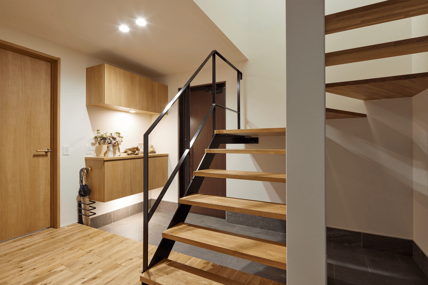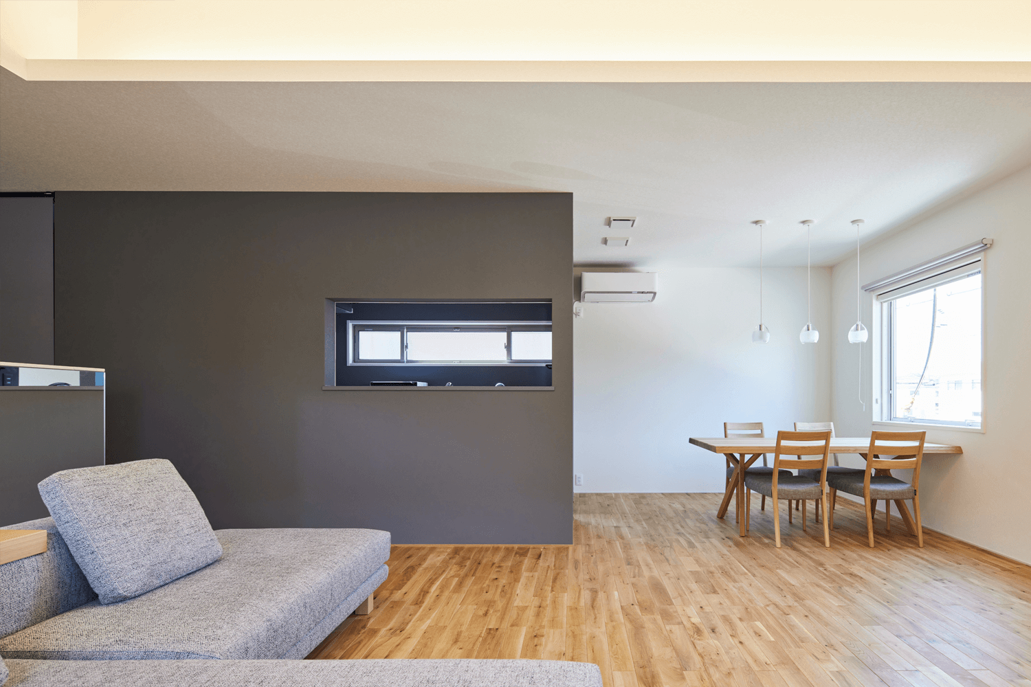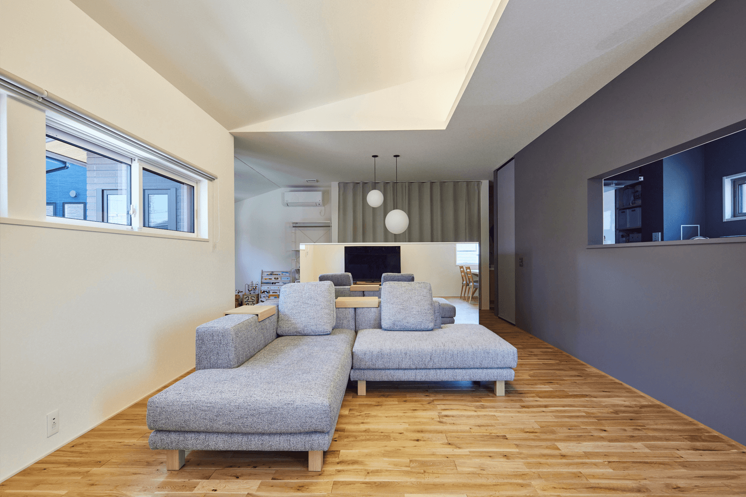 そして、なるべく広く空間を見せたかったので、屋根なりに天井を高くとり、階段室、和室も一体にしました。