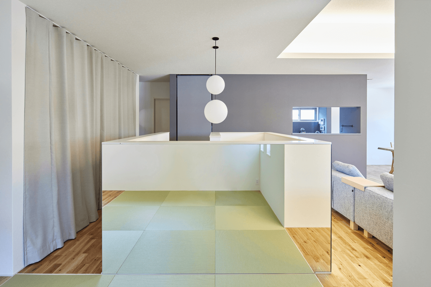 #畳コーナー #トモイエ #アクセントクロス #セミクローズキッチン #勾配天井 #シースルー階段 #カーテン #間接照明Design Plan