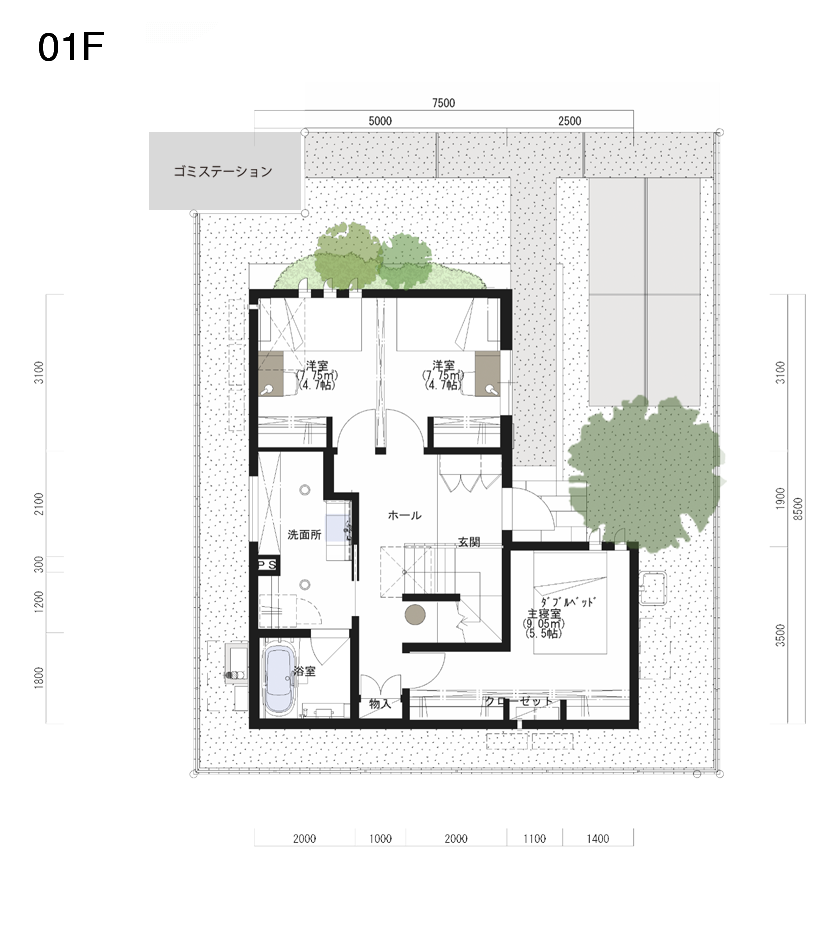 その中で、一緒に選んだ土地は、北向きに道路があり、ゴミステーションが敷地内にある区画です。