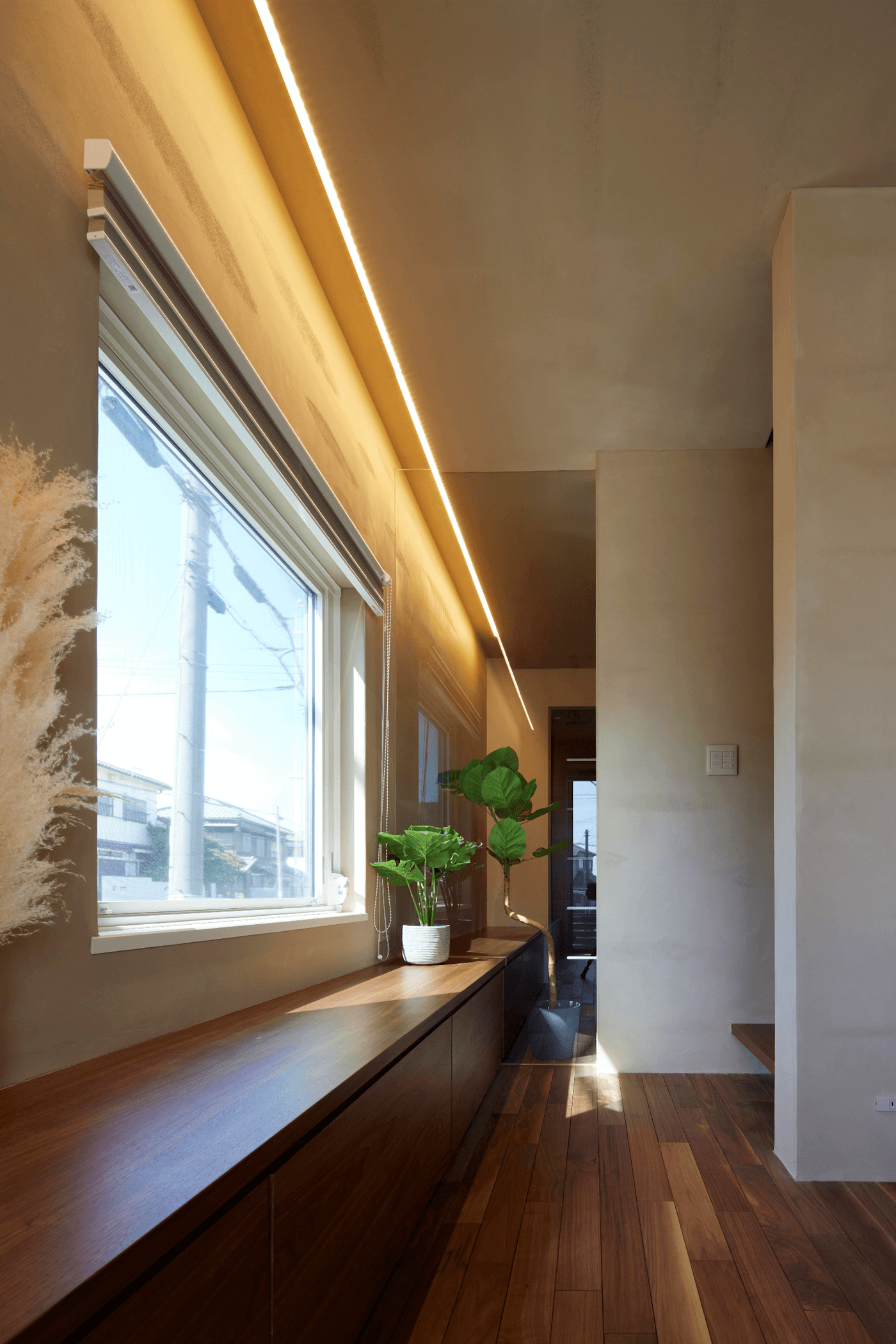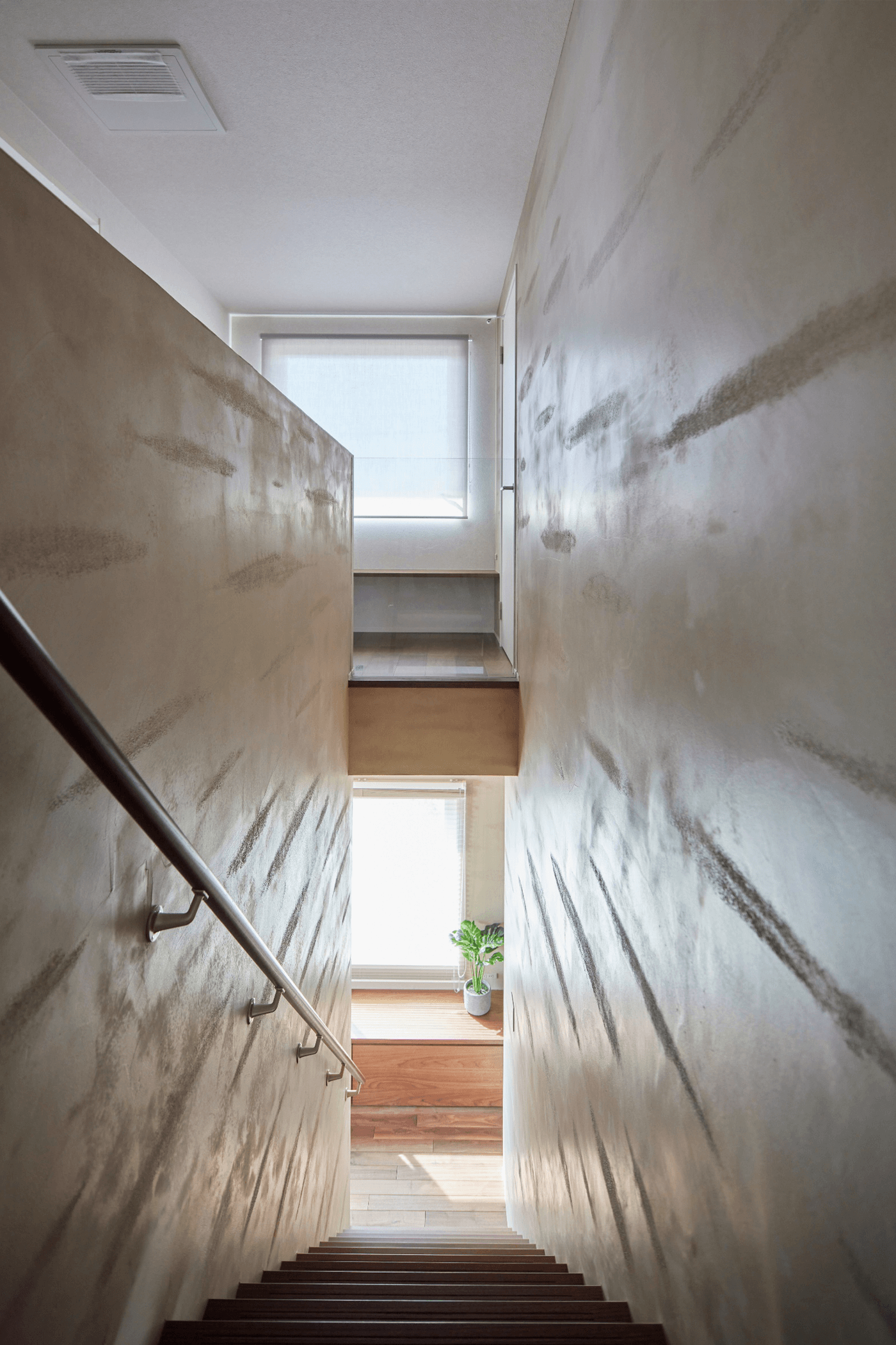 折角、塗り壁にするので、より効果的に、より印象的になるよう、ダウンライトを極力使わないように考えました。