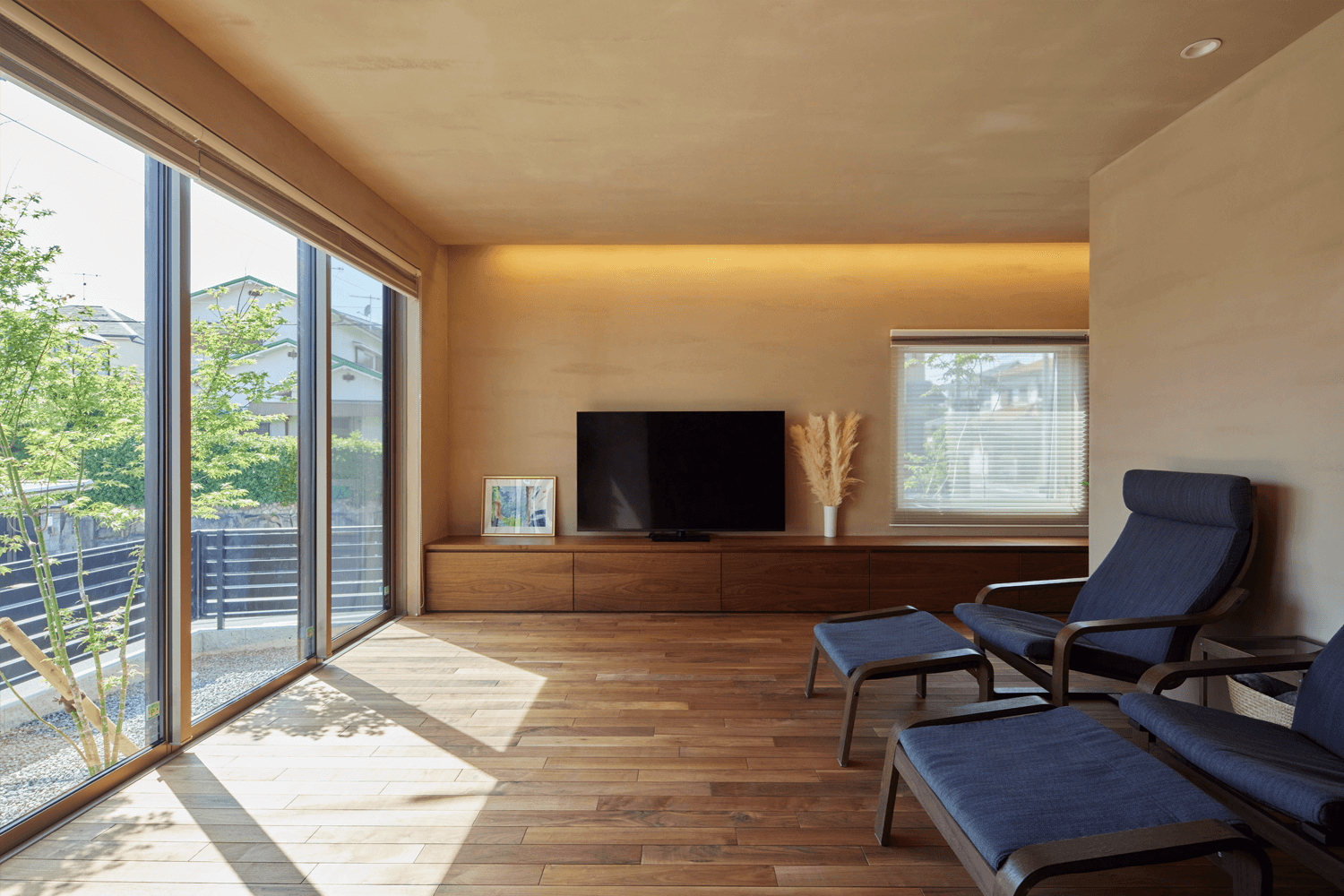 そうすることで、壁面が印象的に映り、よりシリカライムの効果が発揮されると考えたからです。