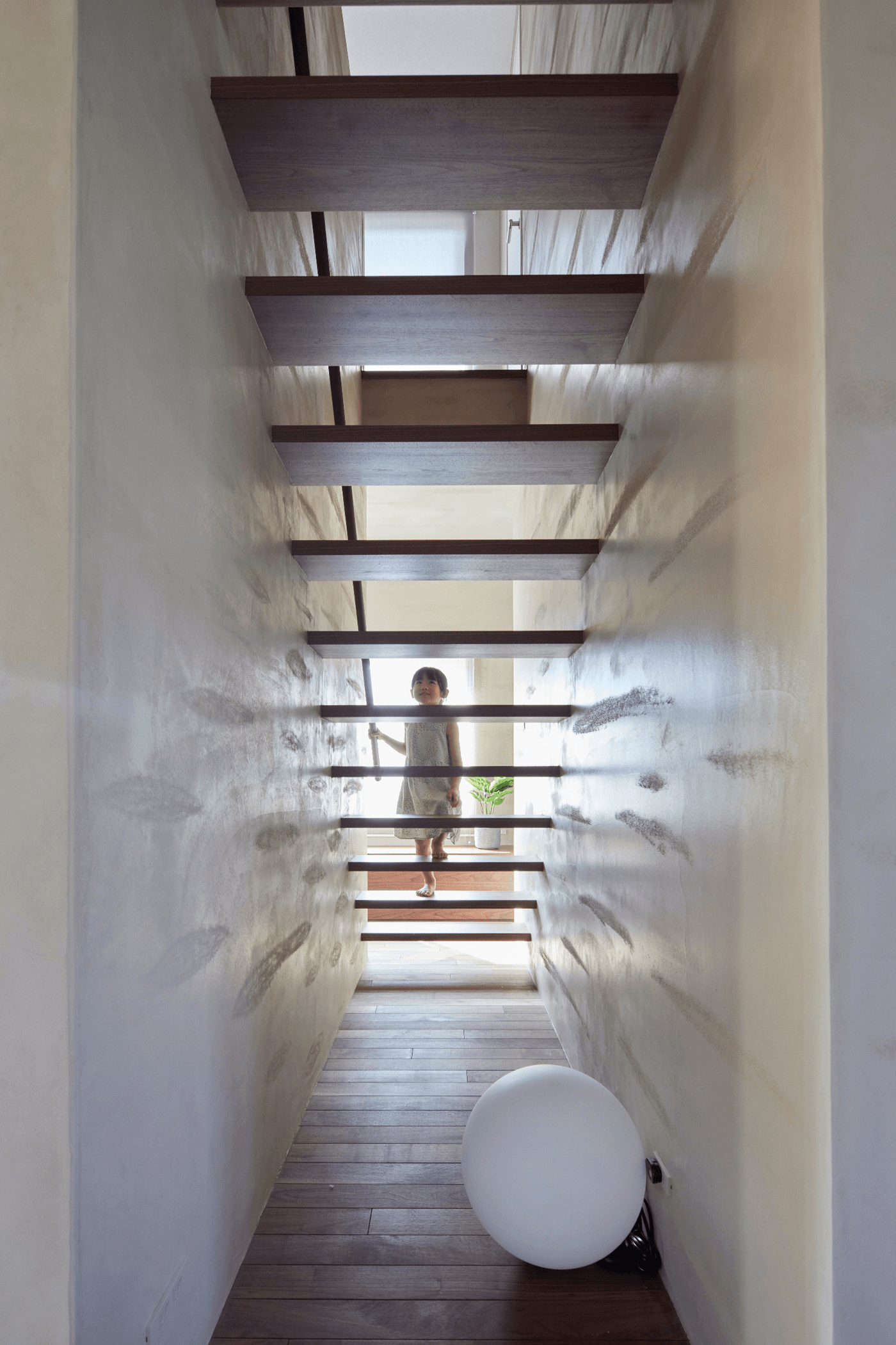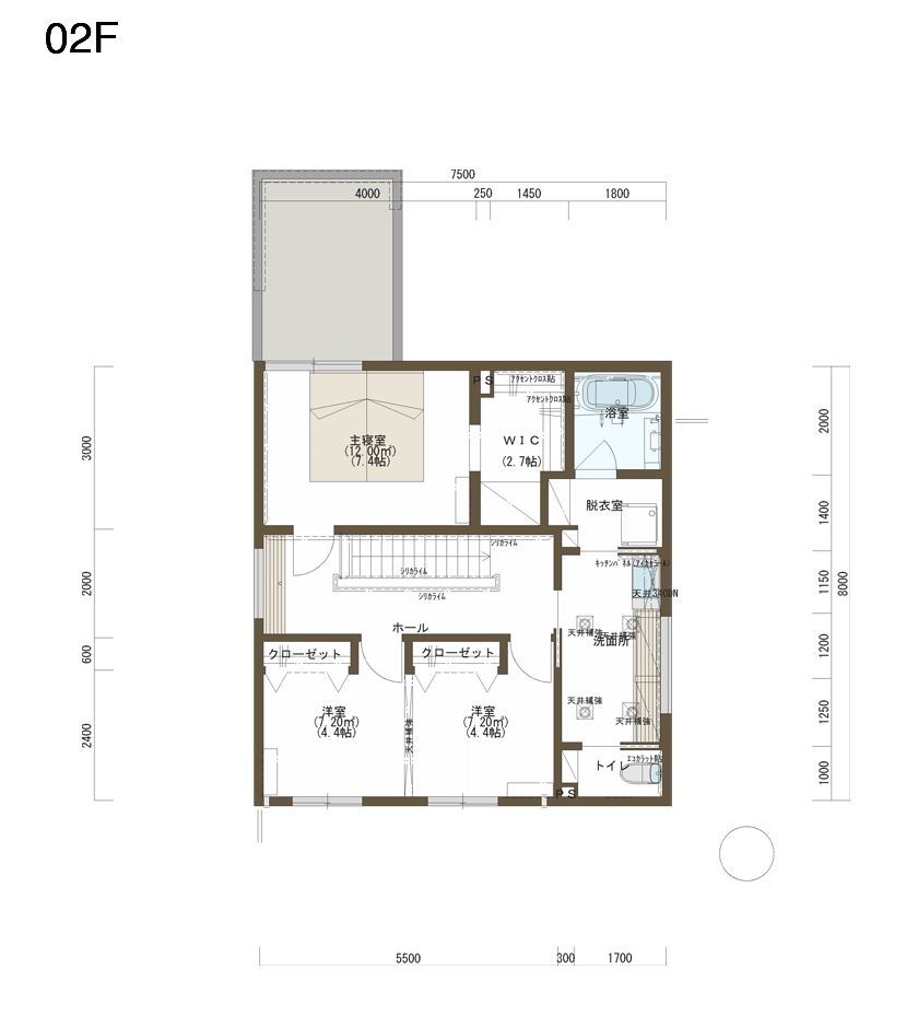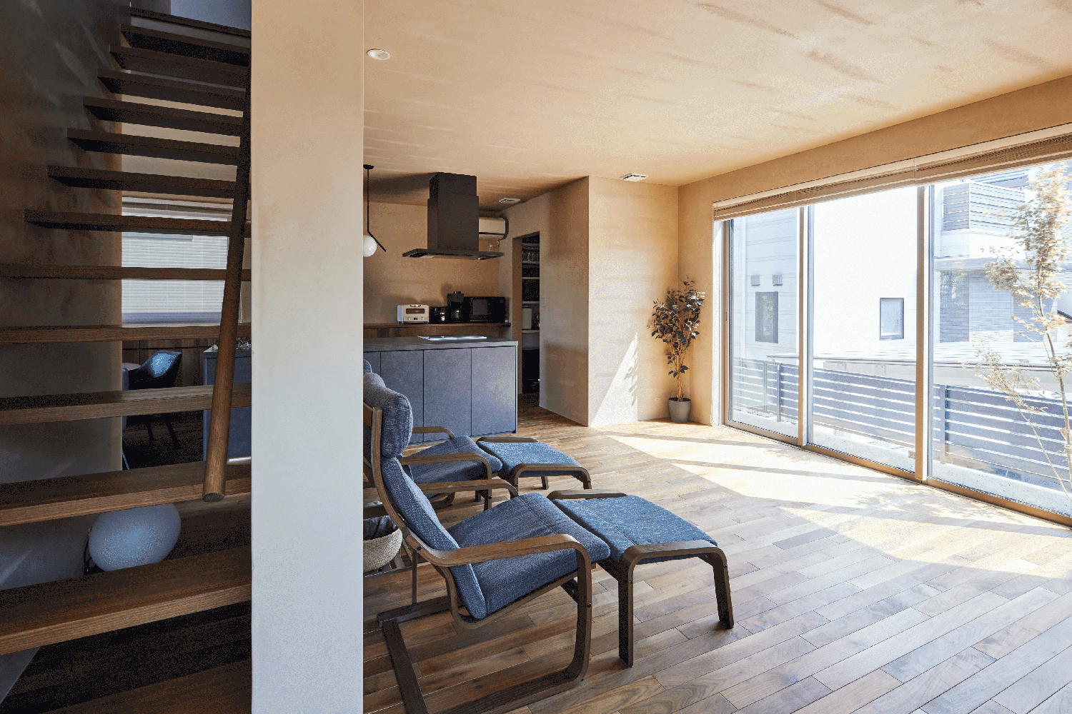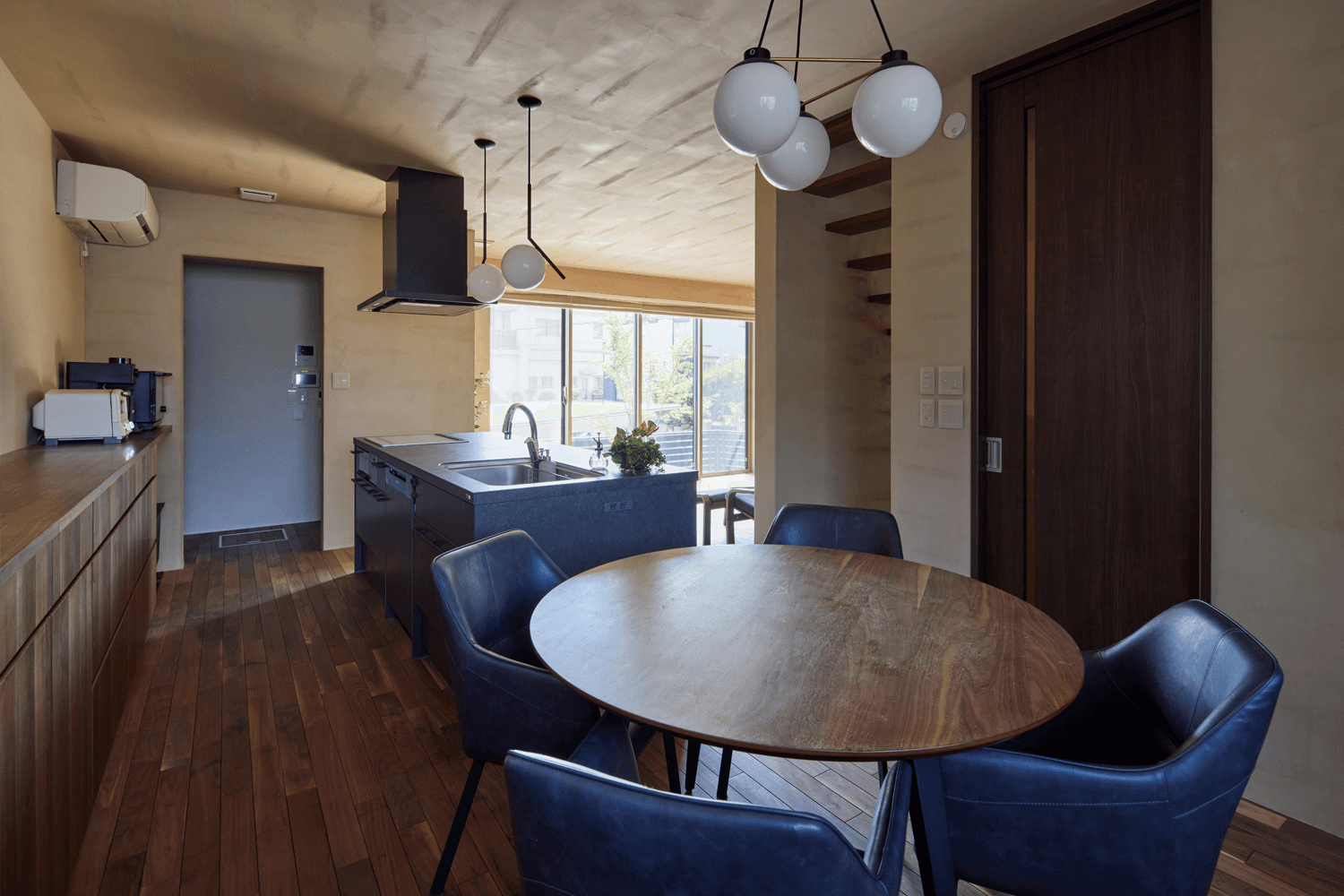 #塗り壁 #左官 #間接照明 #ペンダントライト #アイランドキッチン #2階水回り #造作工事 #丸テーブル #シースル階段Design Plan