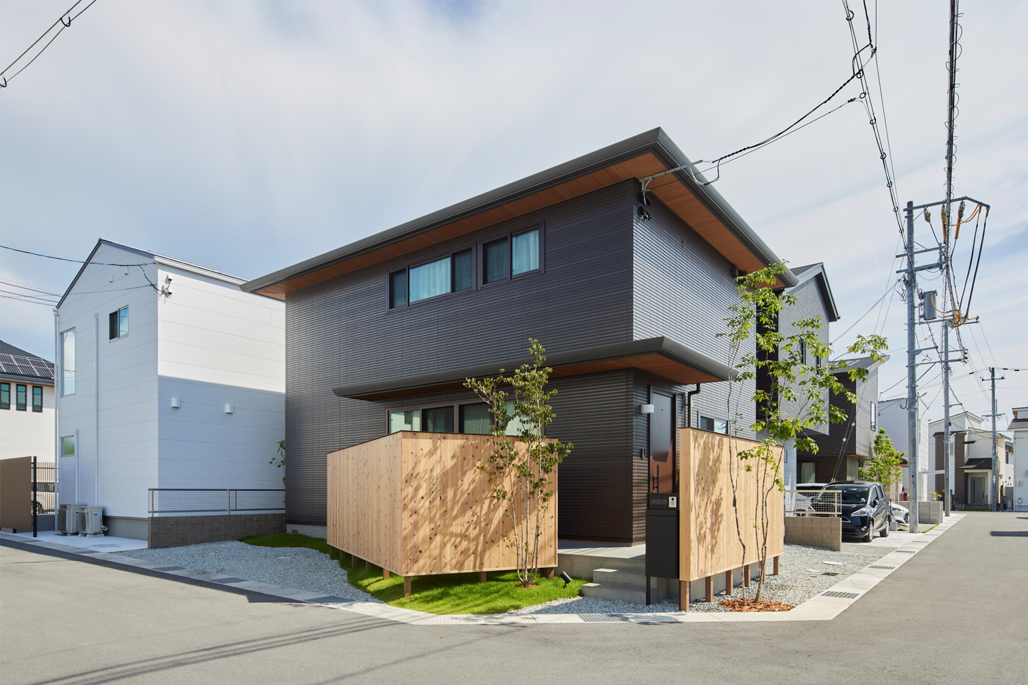 建築地は、40区画以上ある新興住宅地の1画で、北東の角地。