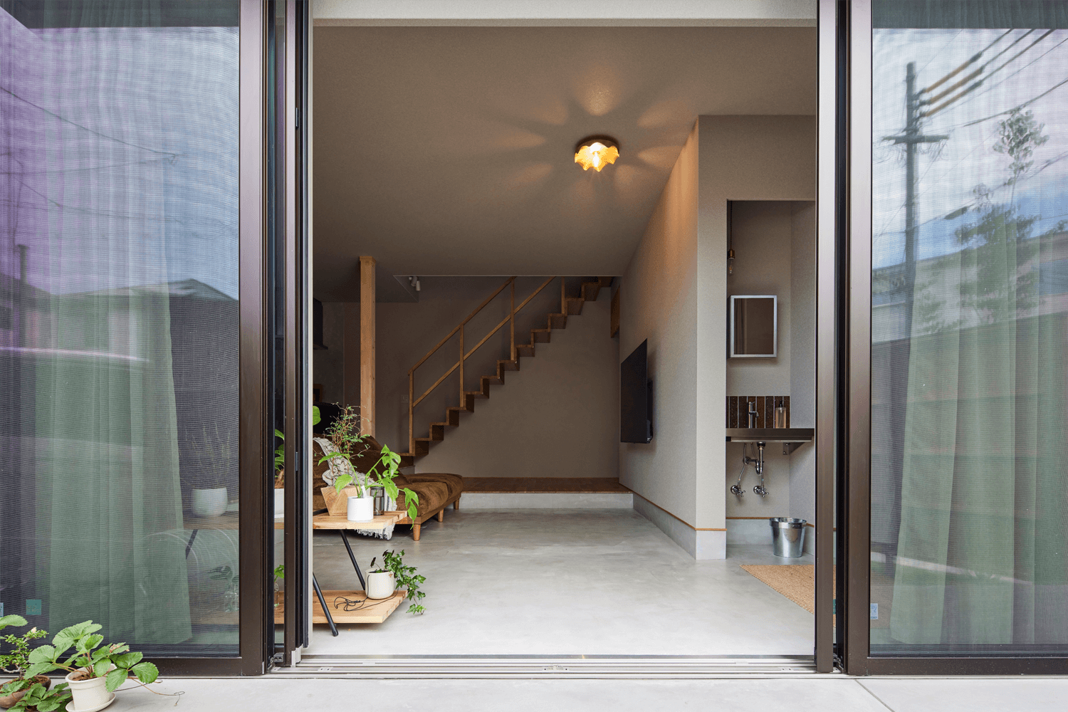 玄関からリビング、リビングから庭までがどーんとつながっています。