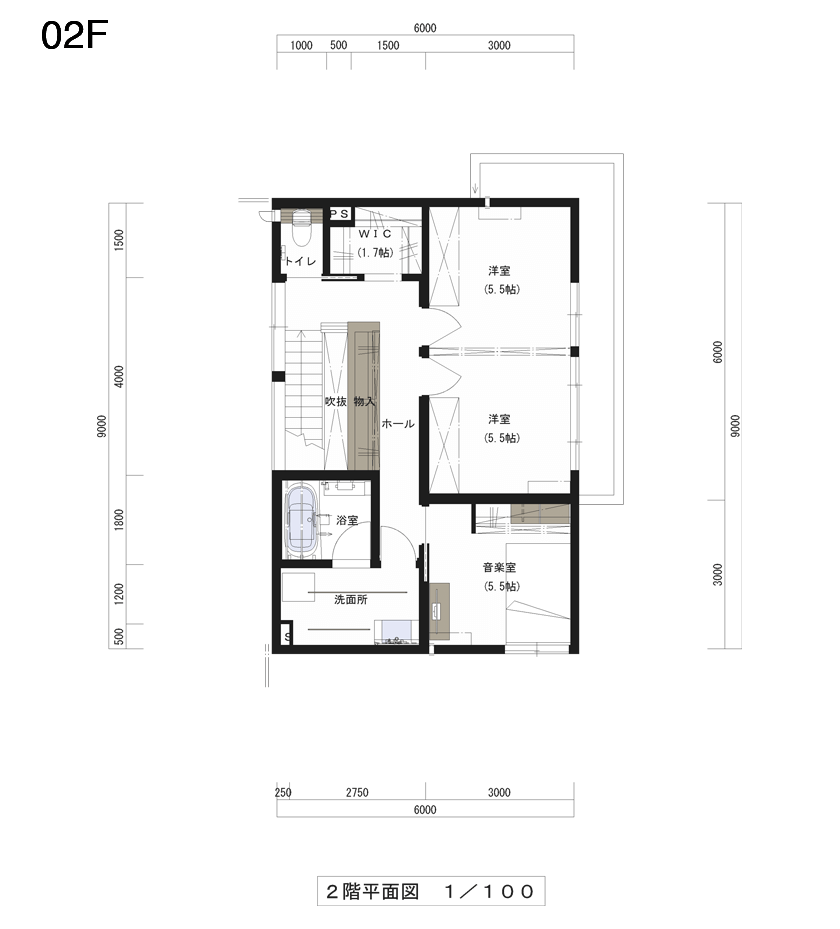 周辺環境が不明でしたので、南と西は基本閉じ、道路がある北と東に開ける設計としました。
