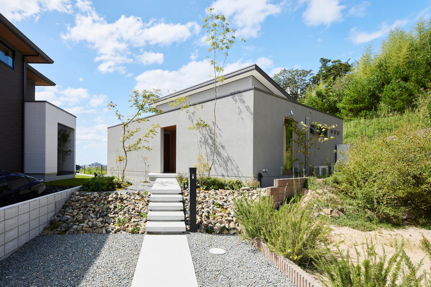家の中から見る景色を、住宅地とは思えないほど自然に囲まれたものにする設計をめざしました。