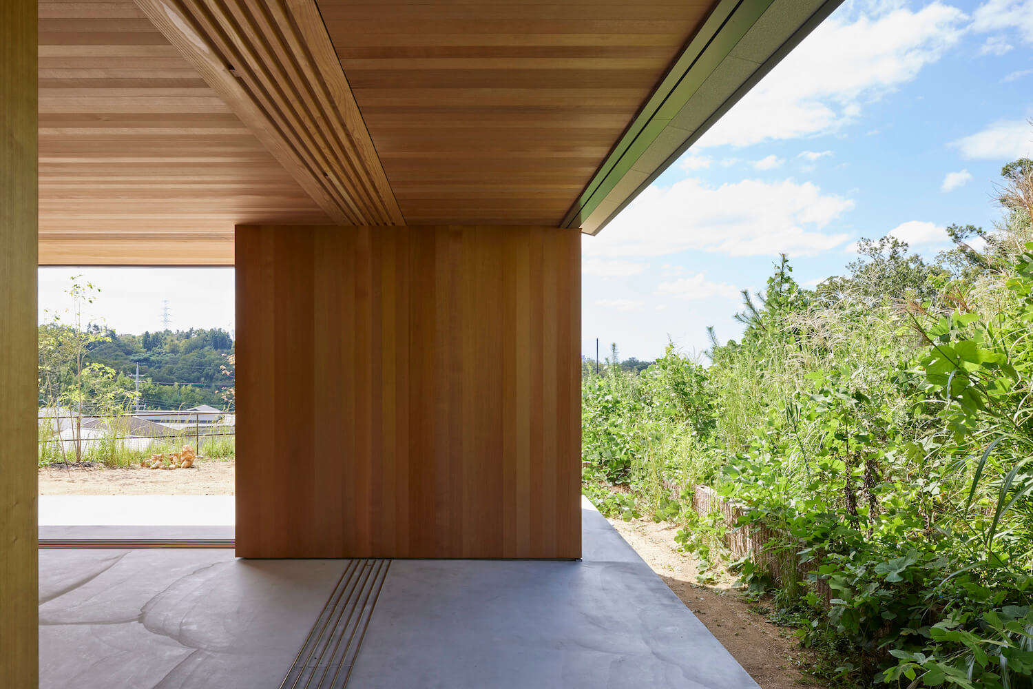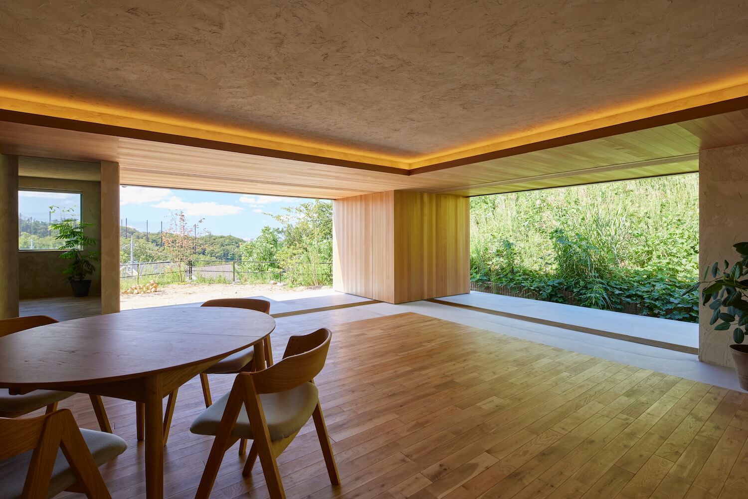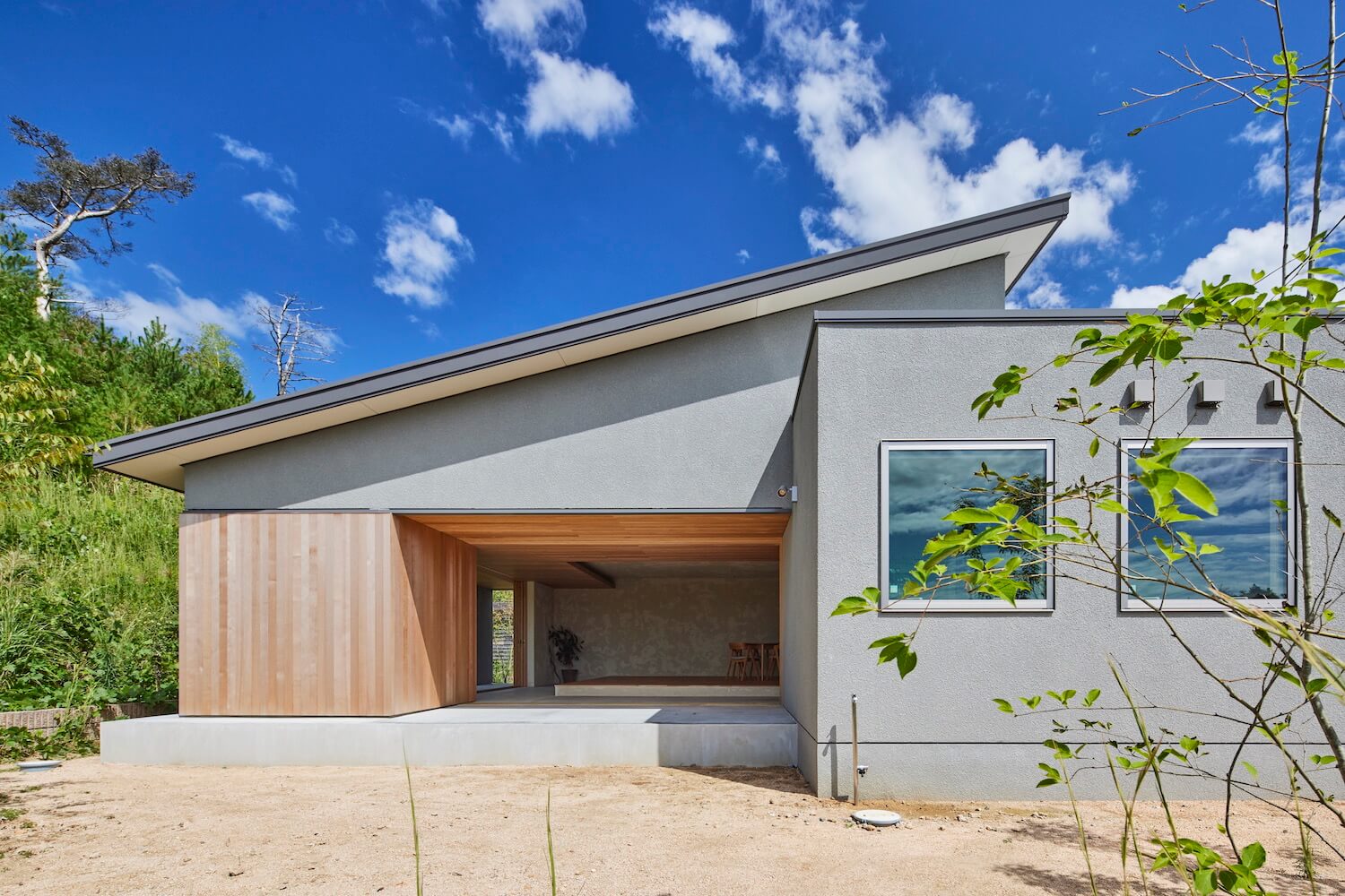 北側に森の借景、西側に空と山の借景。