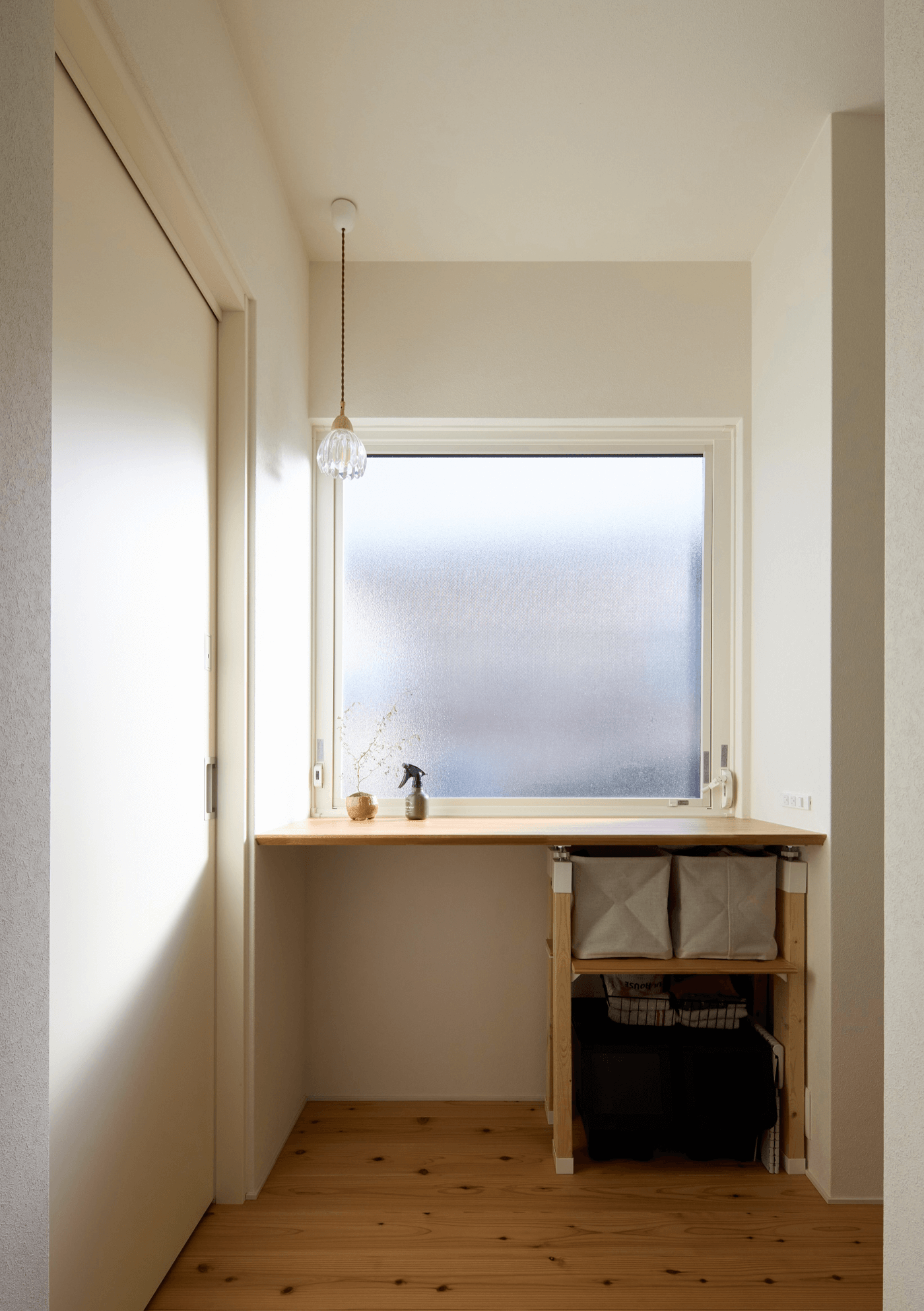 そして、綺麗な空と六甲山の景色を窓辺から座って眺めることができるよう、ベンチを造作。