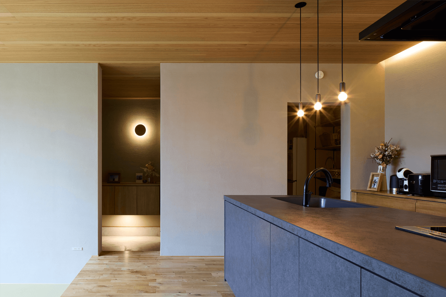 #アイランドキッチン #パントリー #間接照明 #塗り壁 #シルタッチ #珪藻土 #天井板貼り #the wall #目隠しフェンス #DIYDesign Plan