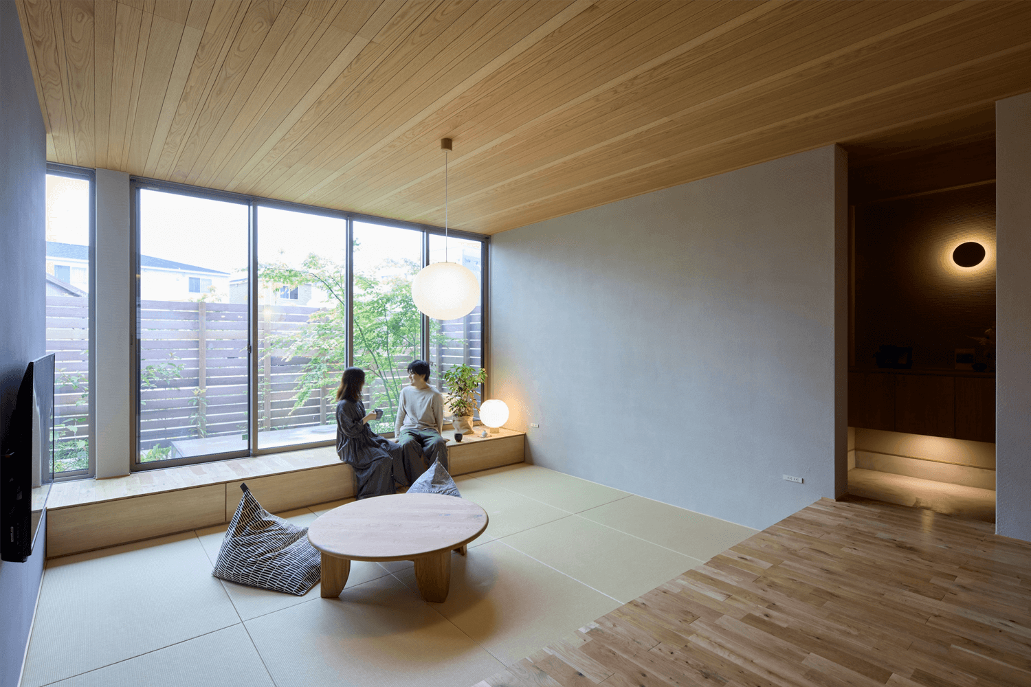 #平屋 #吹付外壁 #無垢床 #ピットリビング #畳 #回遊動線