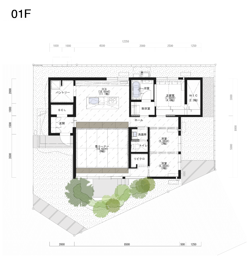 今回のお施主様にとっては、ソファーとダイニングテーブルはいらないと考え、間取りを構成しました。