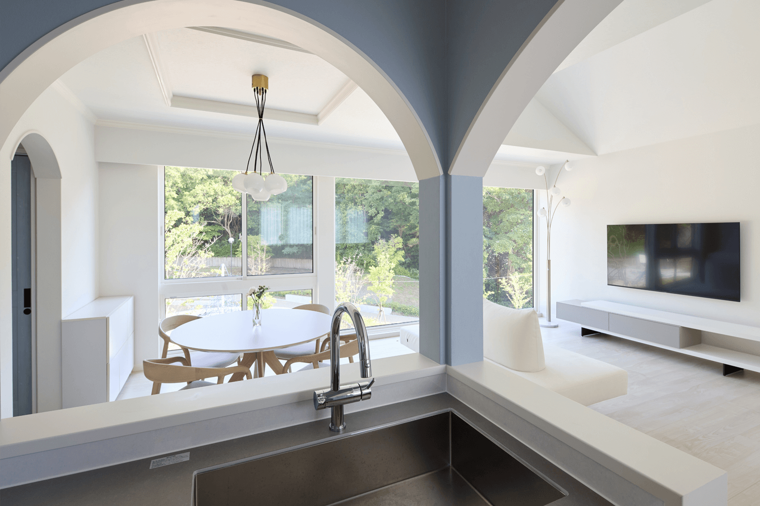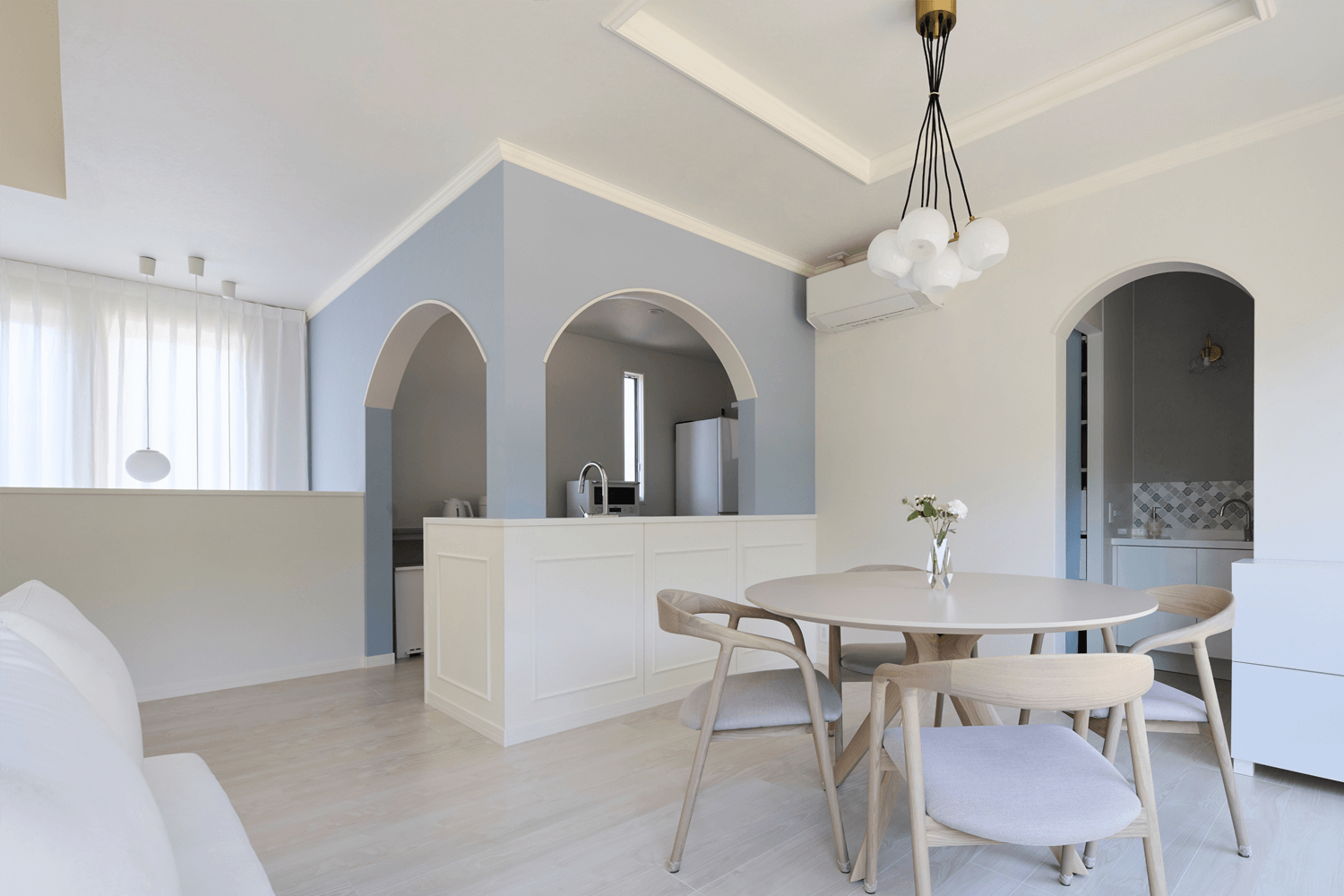 開口部は2つのアール壁を施すことで、柔らかな雰囲気を創出しています。