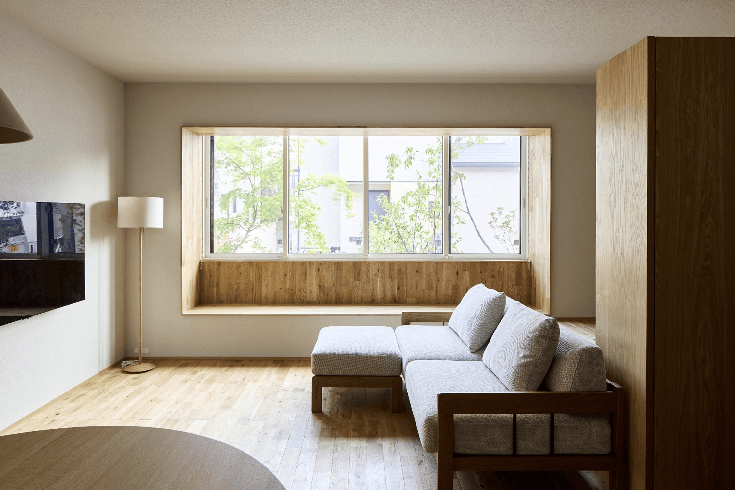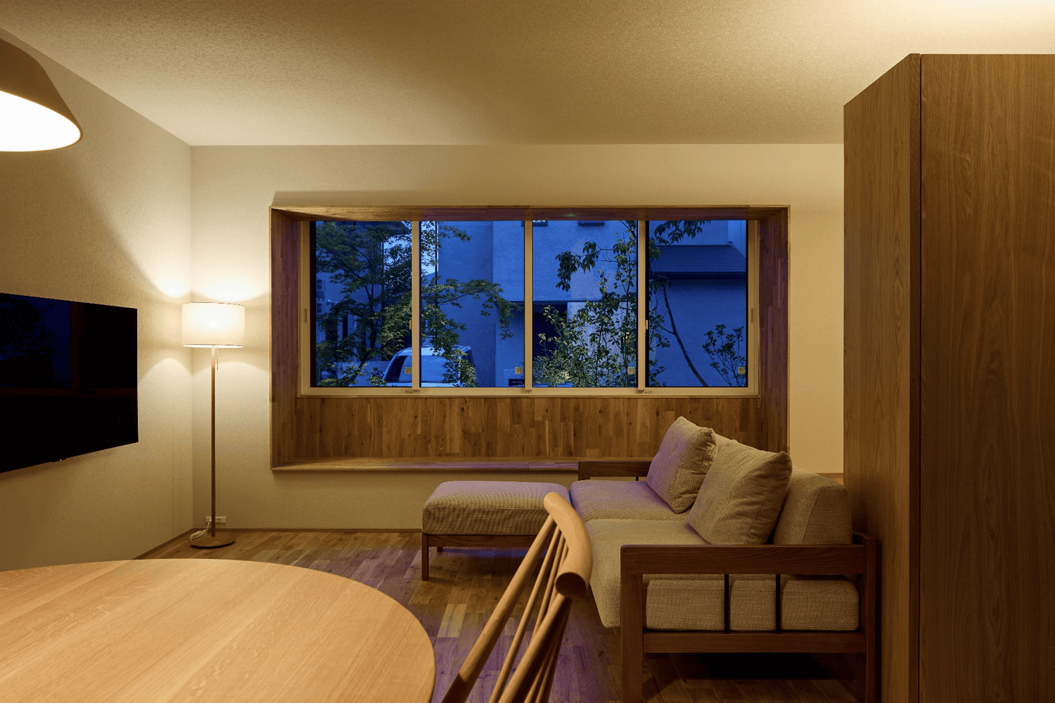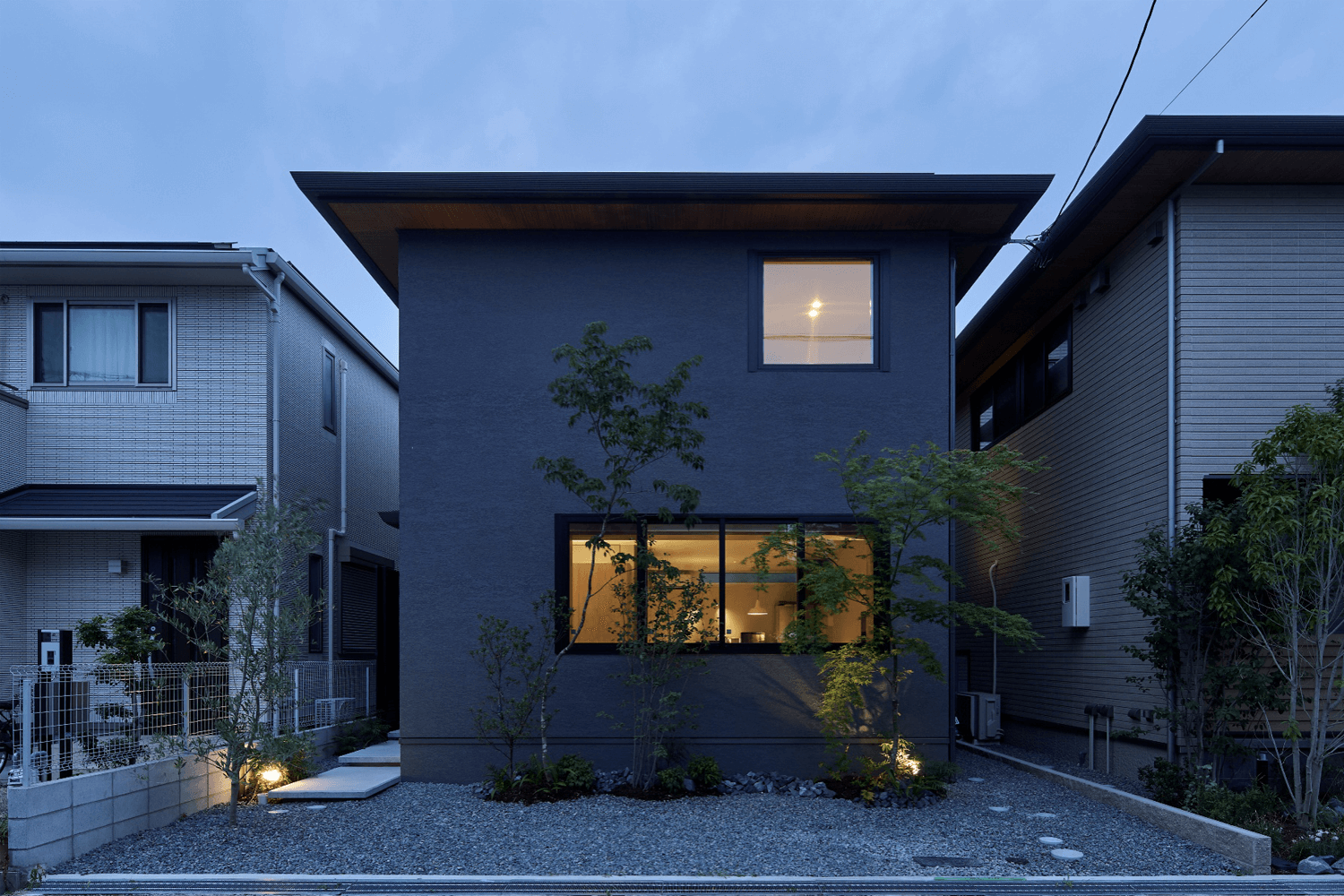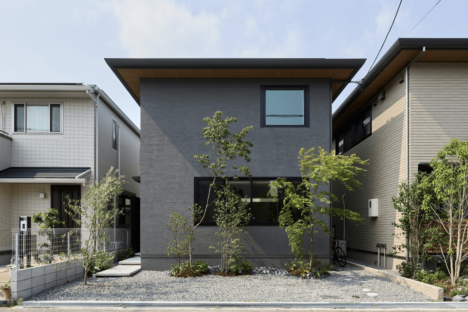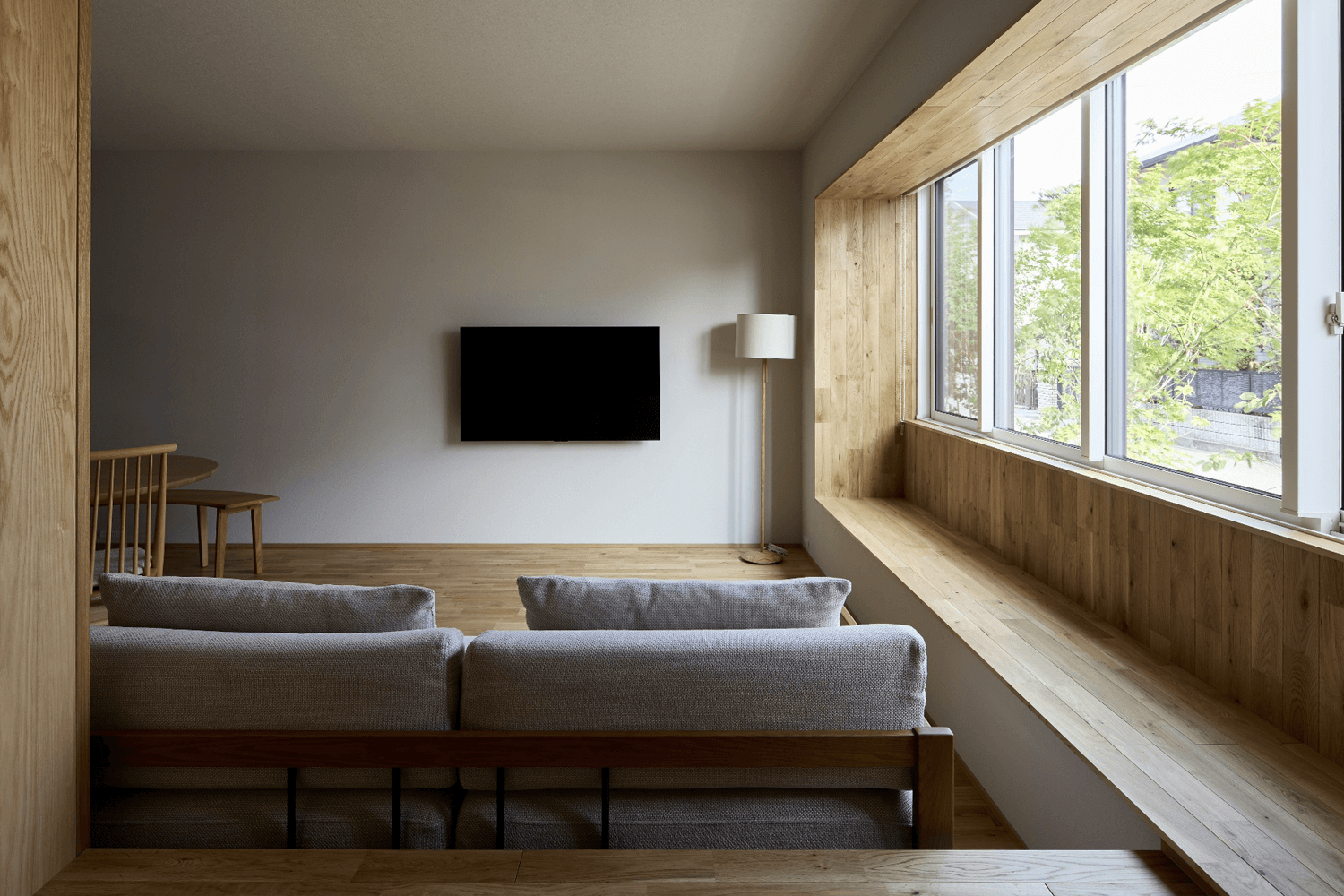 プライベートな空間を大切にしながら、外の緑をやさしく取り込む設計としました。