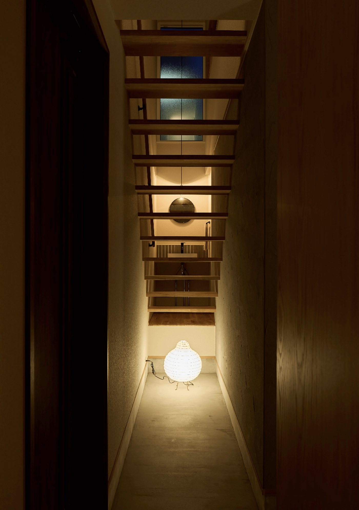 段板のみの階段から差し込む光が、時間帯ごとに異なる表情を見せ、日常を楽しませてくれます。