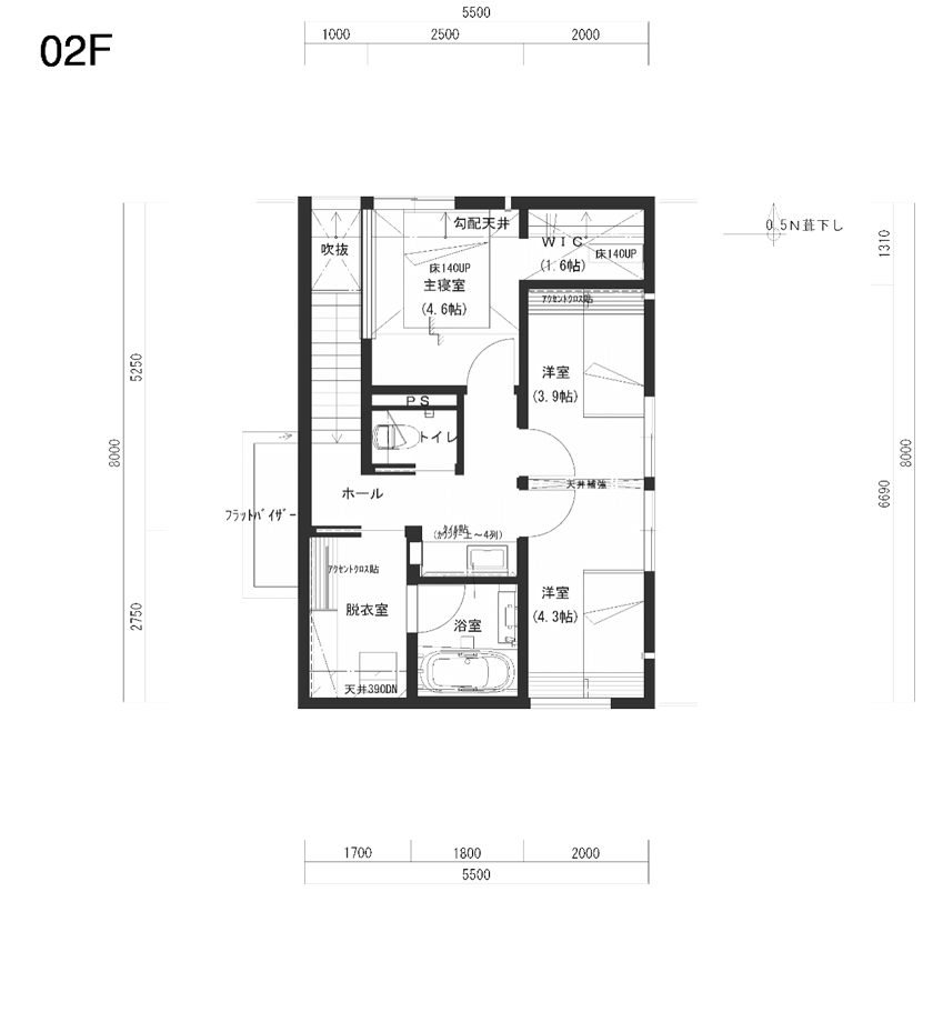 主寝室には階段の吹き抜けに向けたミニヌックを設け、ささやかな遊び心をくすぐります。